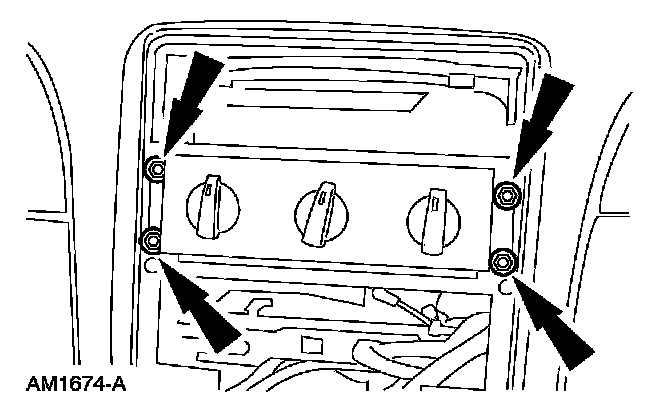1. Remove the center instrument panel register. Refer to: Body and Frame, Interior Trim, Dashboard/Instrument Panel, Service and Repair, Center Finish Panel, Center Finish Panel