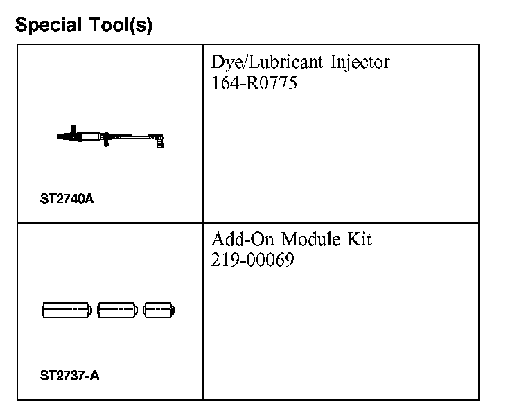 2. Assemble the dye/lubricant injector using the correct adapters to match the amount of PAG oil to be injected.