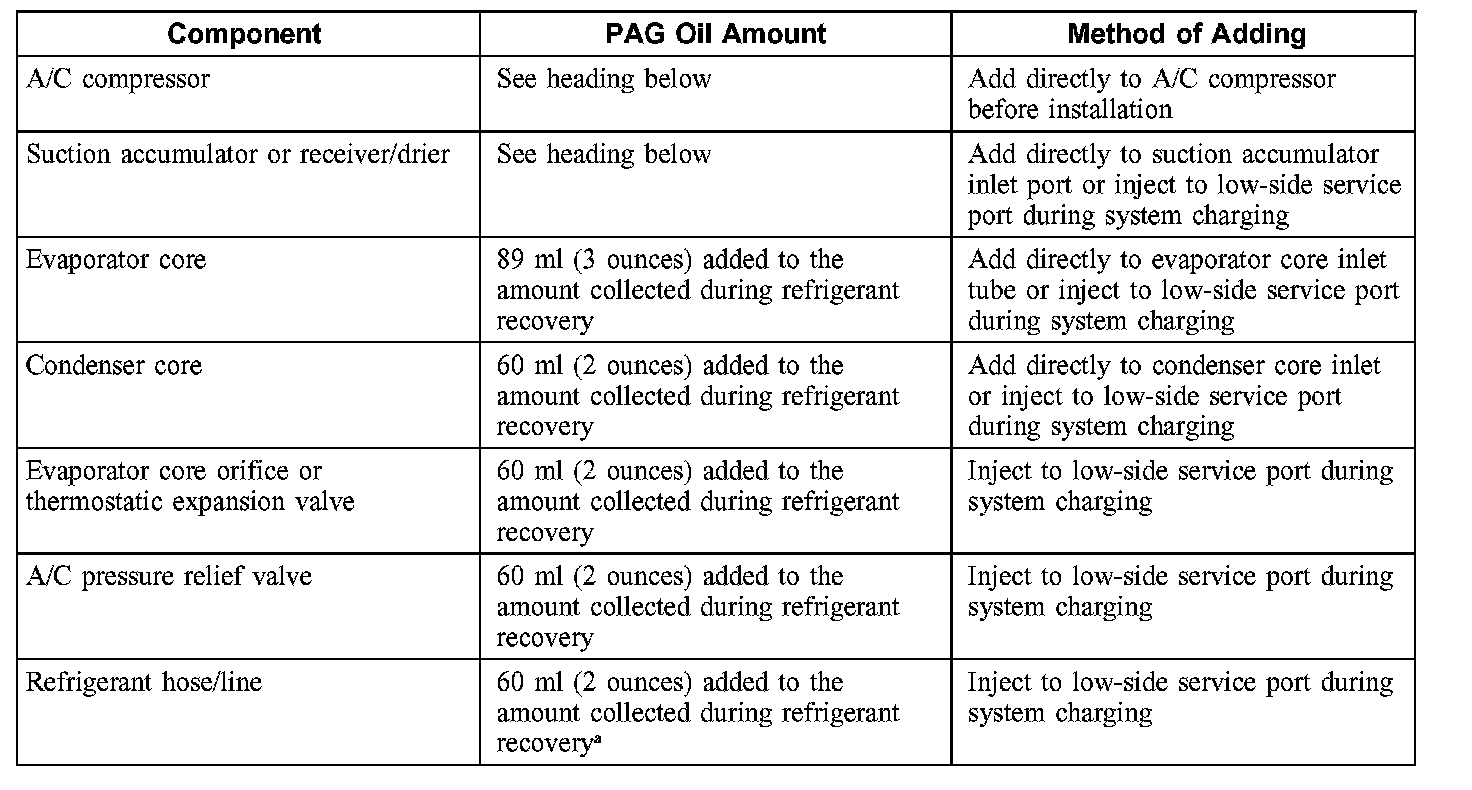Refrigerant Oil Adding for New Suction Accumulator or Receiver/Drier Installation