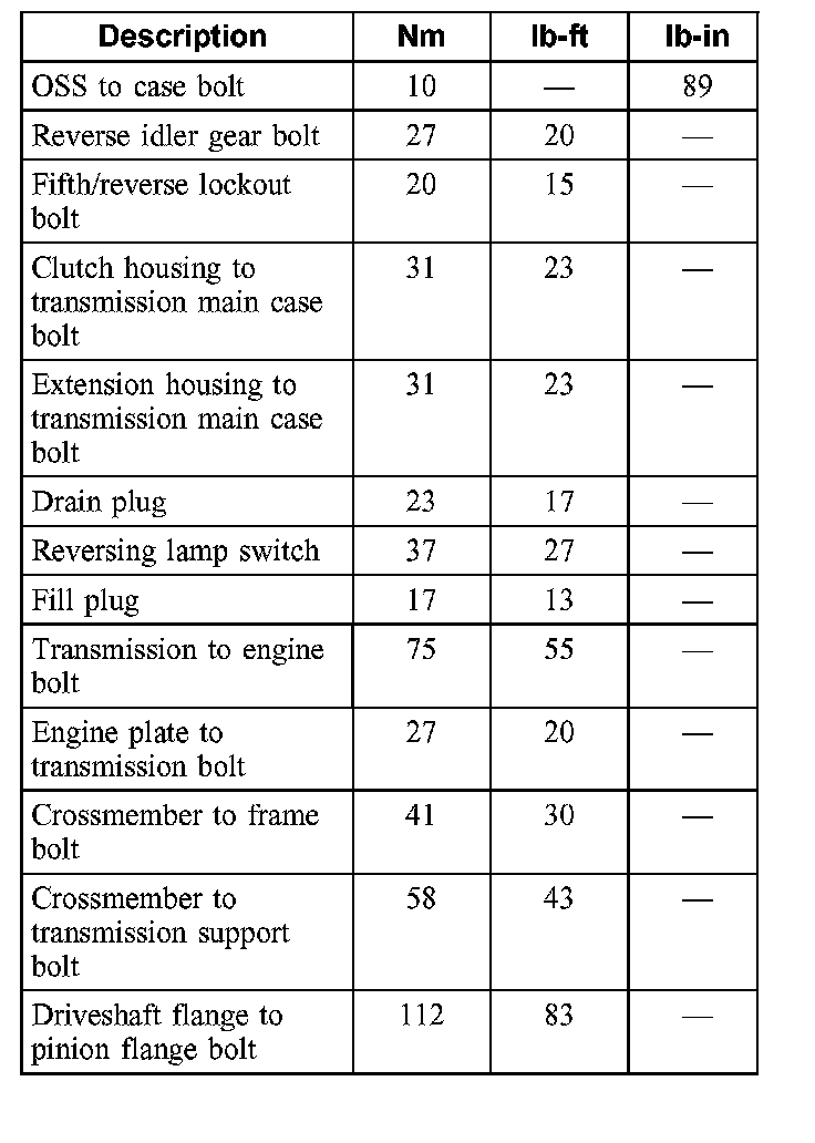 Torque Specifications
