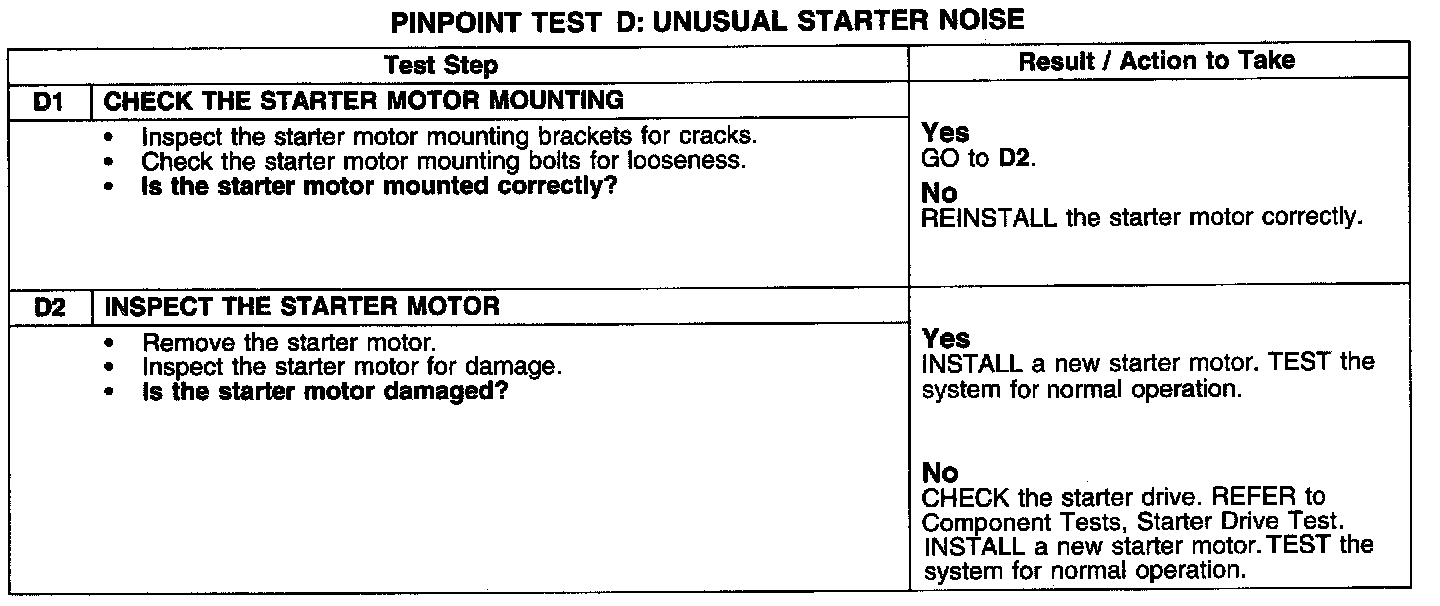 PINPOINT TEST D: UNUSUAL STARTER NOISE