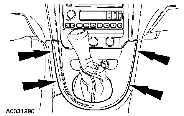 1. NOTE: If the vehicle is equipped with an automatic transmission, position the shift lever in the 1 position before detaching the floor console finish panel.