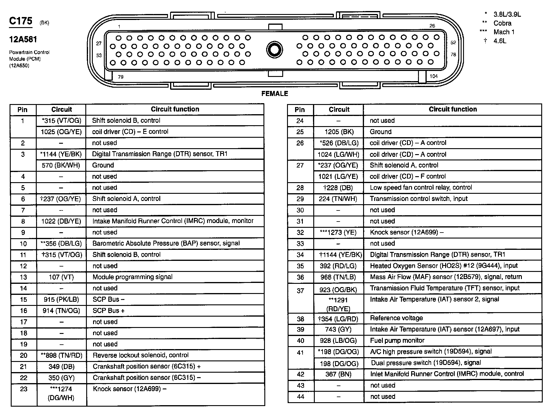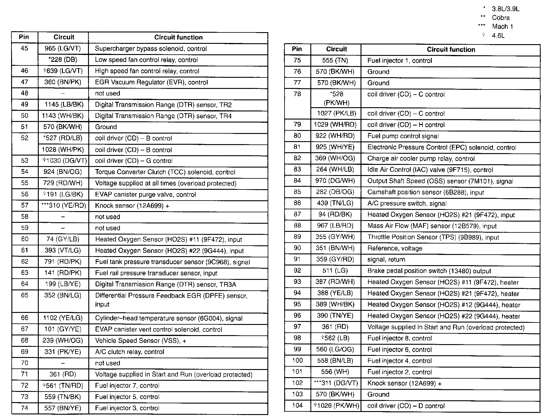Mustang V6-3.9L VIN 6