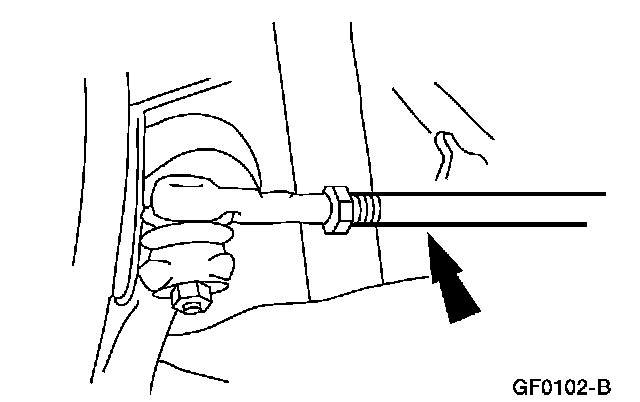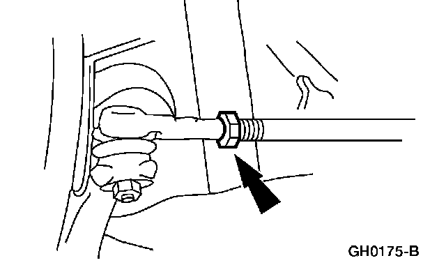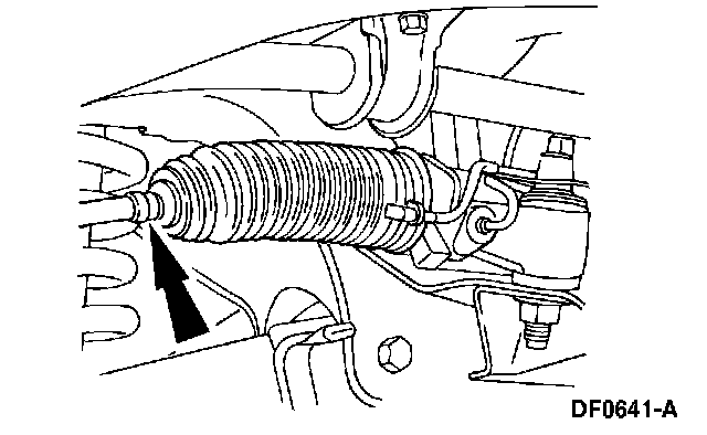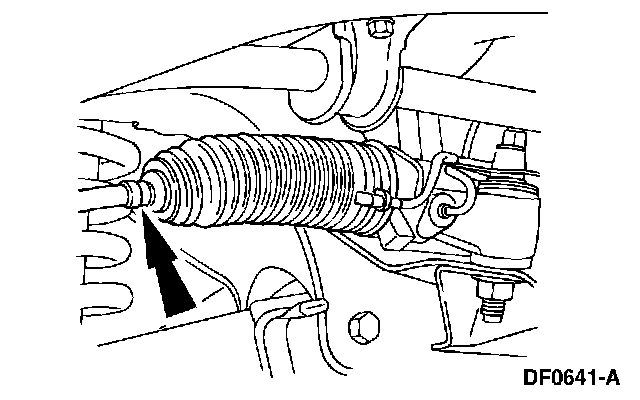 6. NOTE: Do not allow the steering gear bellows to twist when the front wheel spindle tie-rod is rotated.