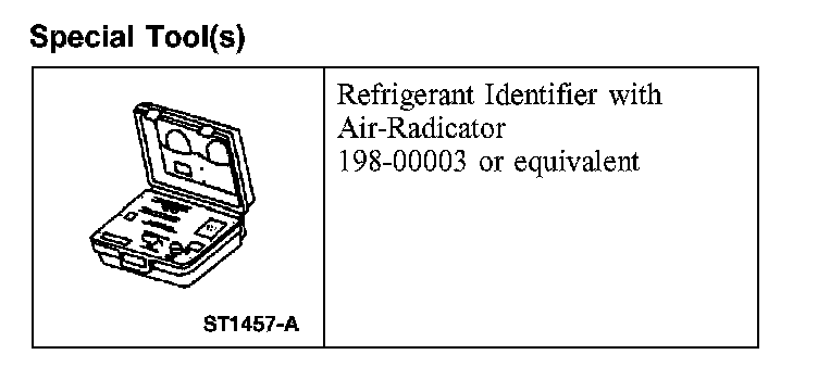 1. NOTE: An A/C refrigerant analyzer must be used to identify gas samples taken directly from the refrigeration system or storage containers prior to recovering or charging the refrigerant system.