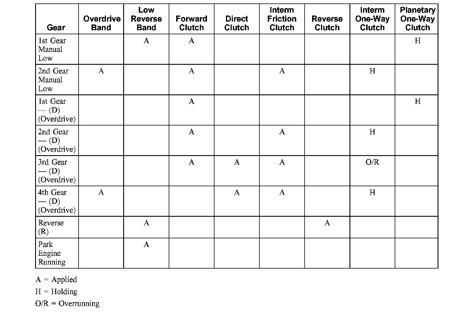 Band and Clutch Application Chart: