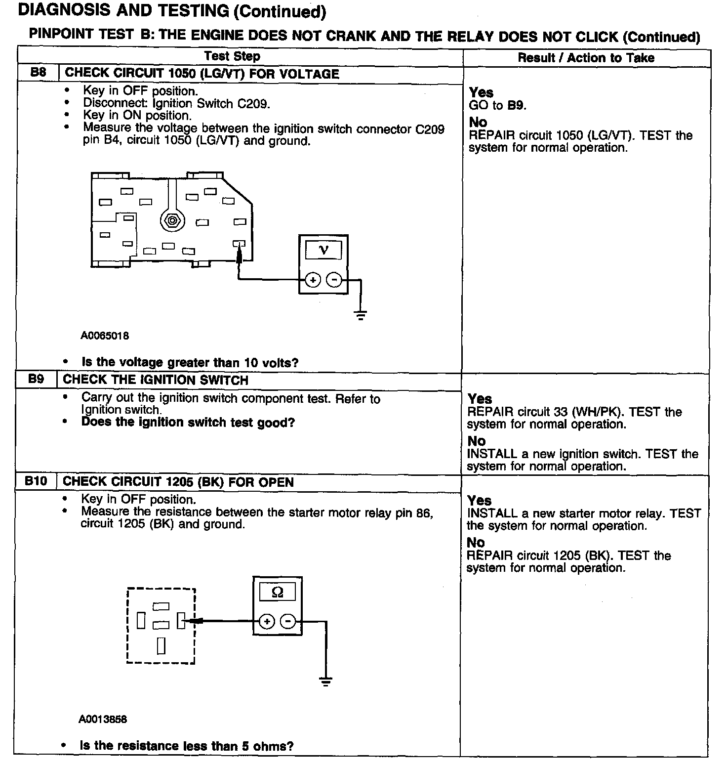 PINPOINT TEST B: THE ENGINE DOES NOT CRANK AND THE RELAY DOES NOT CLICK