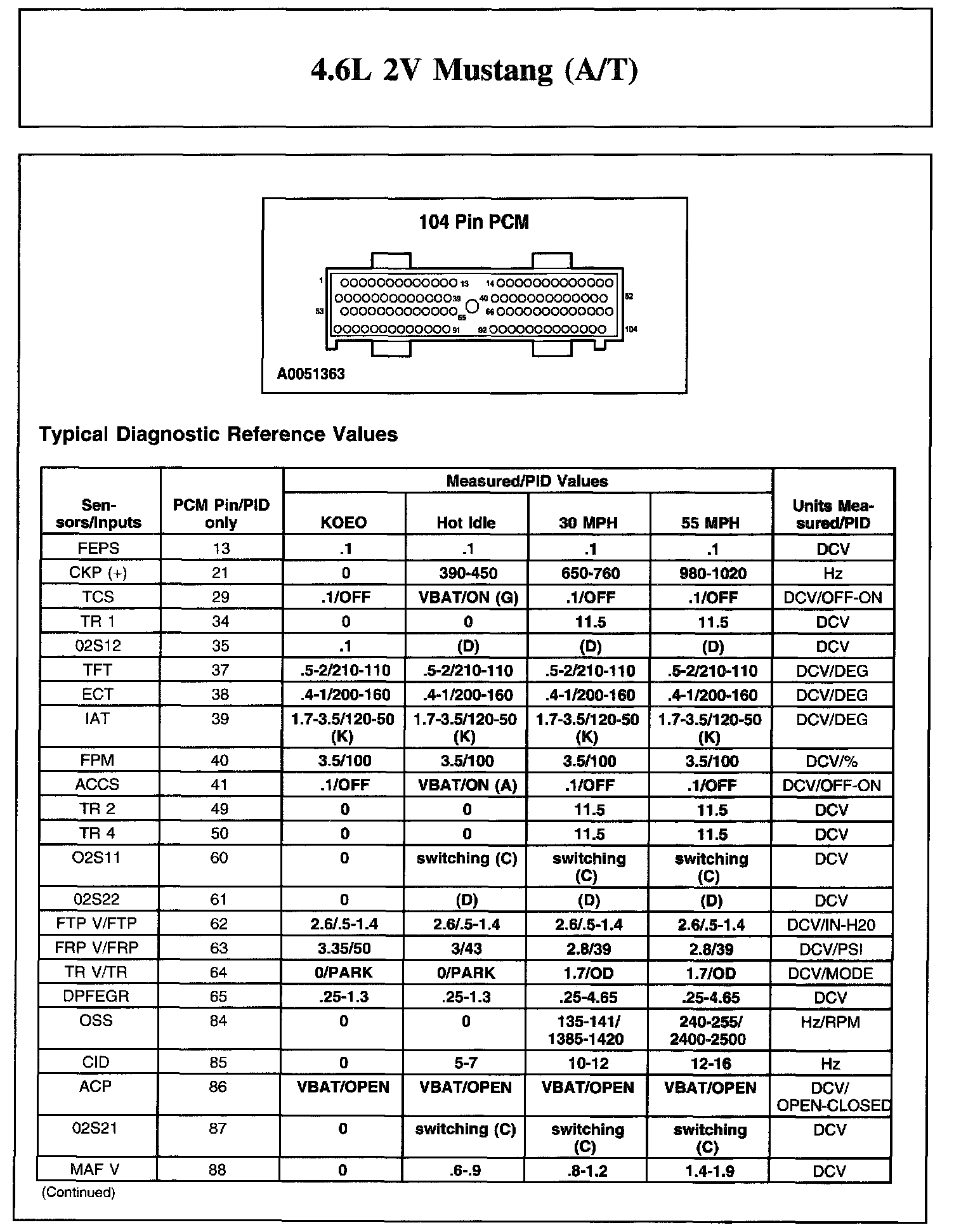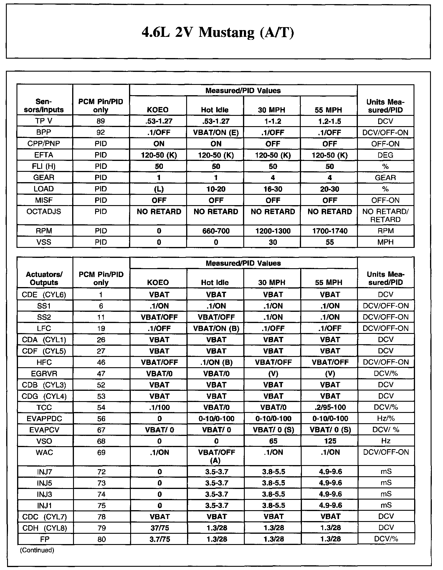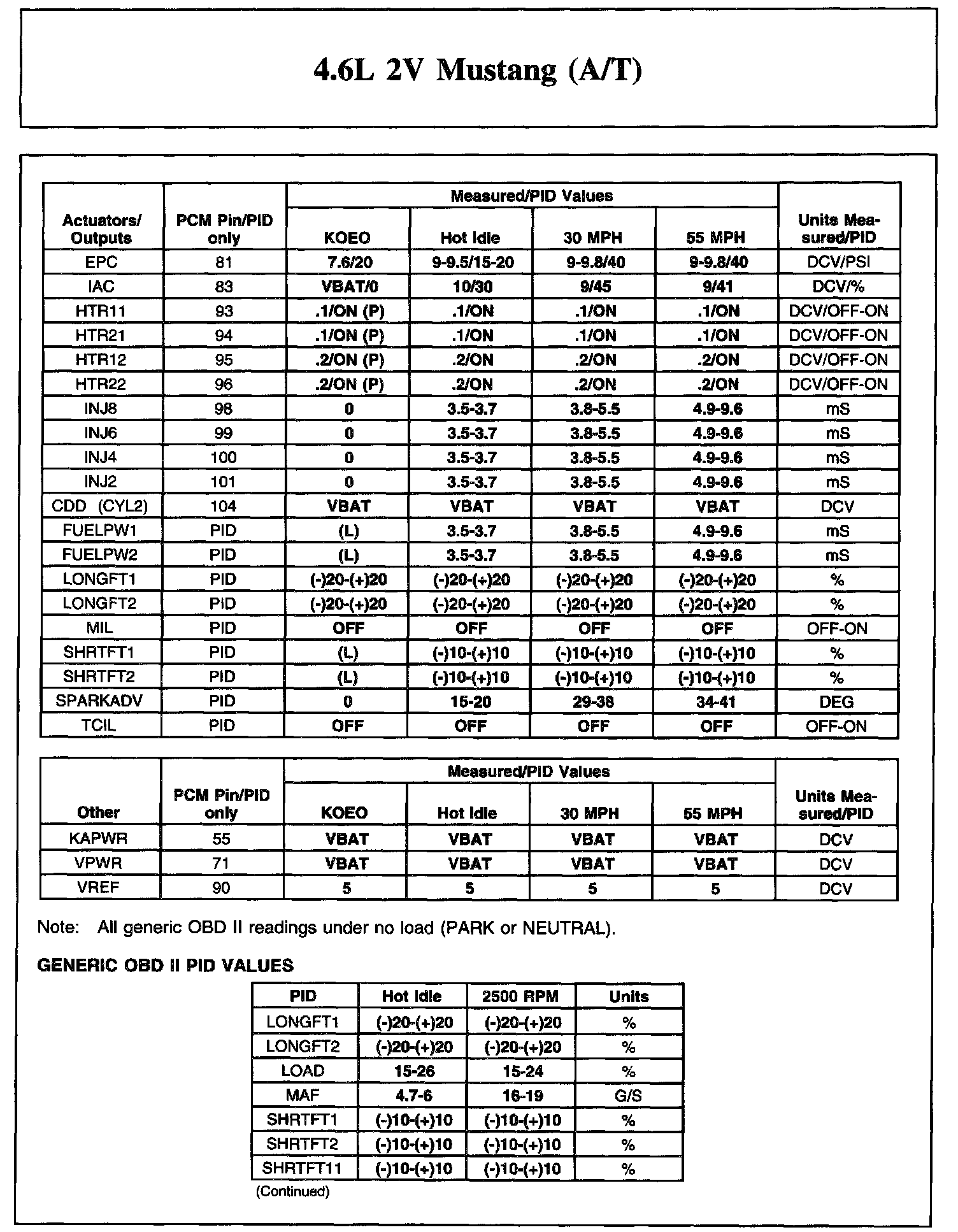The Typical Diagnostic Reference Value Charts do not display fault PIDs. These are PIDs which indicate a hard fault with the circuit. They display a value of "YES" or "NO" and are PIDs ending with an "F".