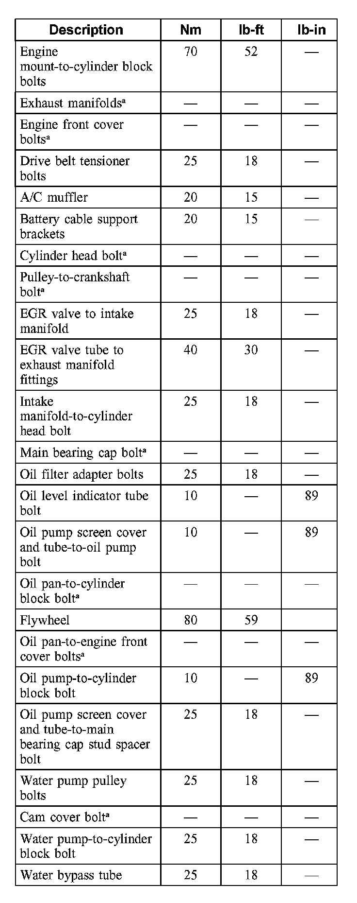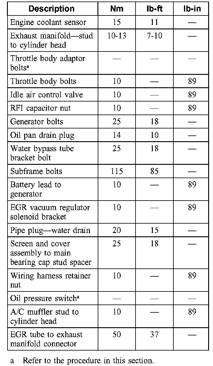 Torque Specifications
