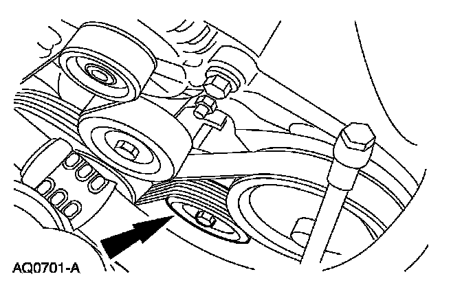 3. Loosen the tensioner and remove the drive belt from the A/C compressor pulley.