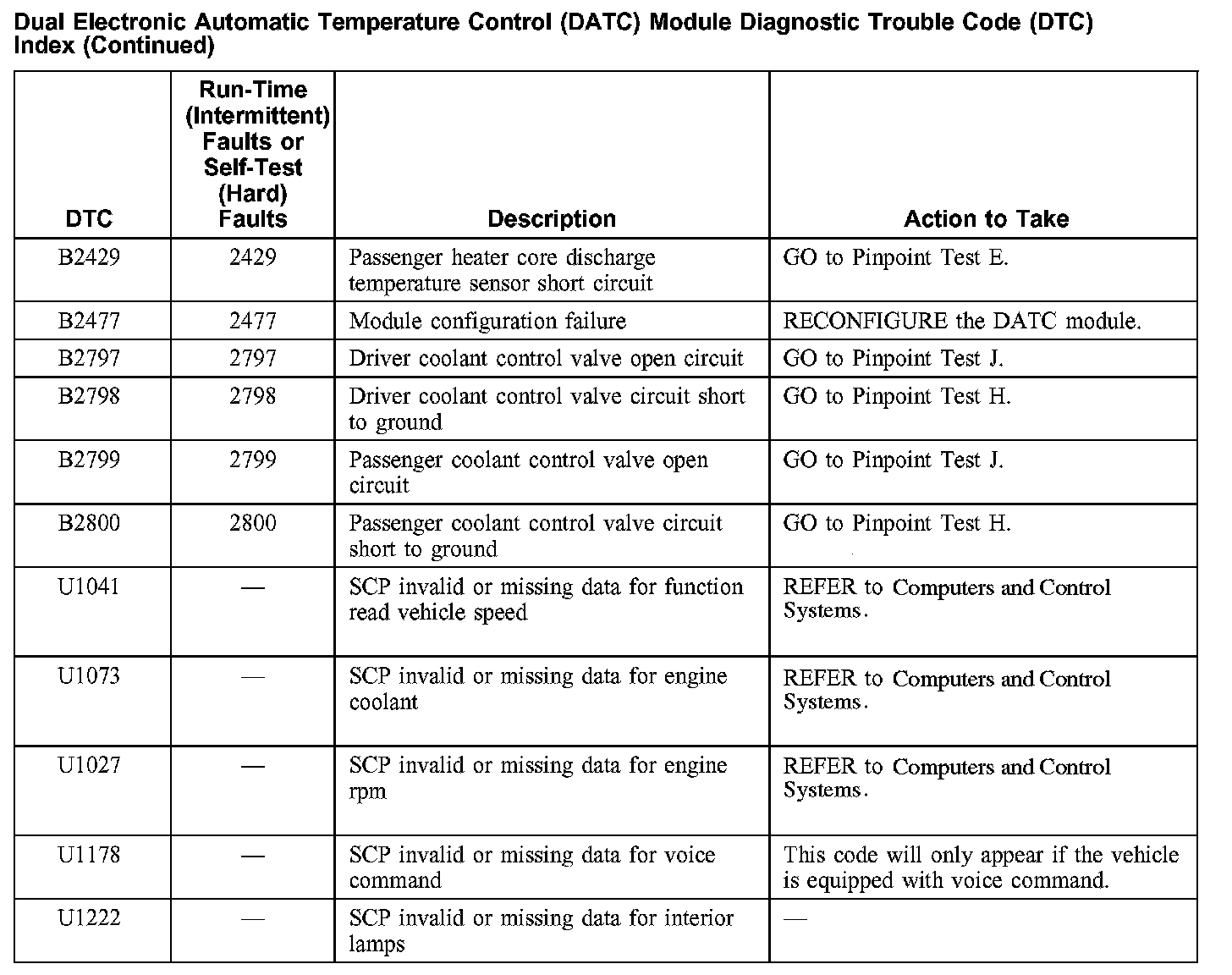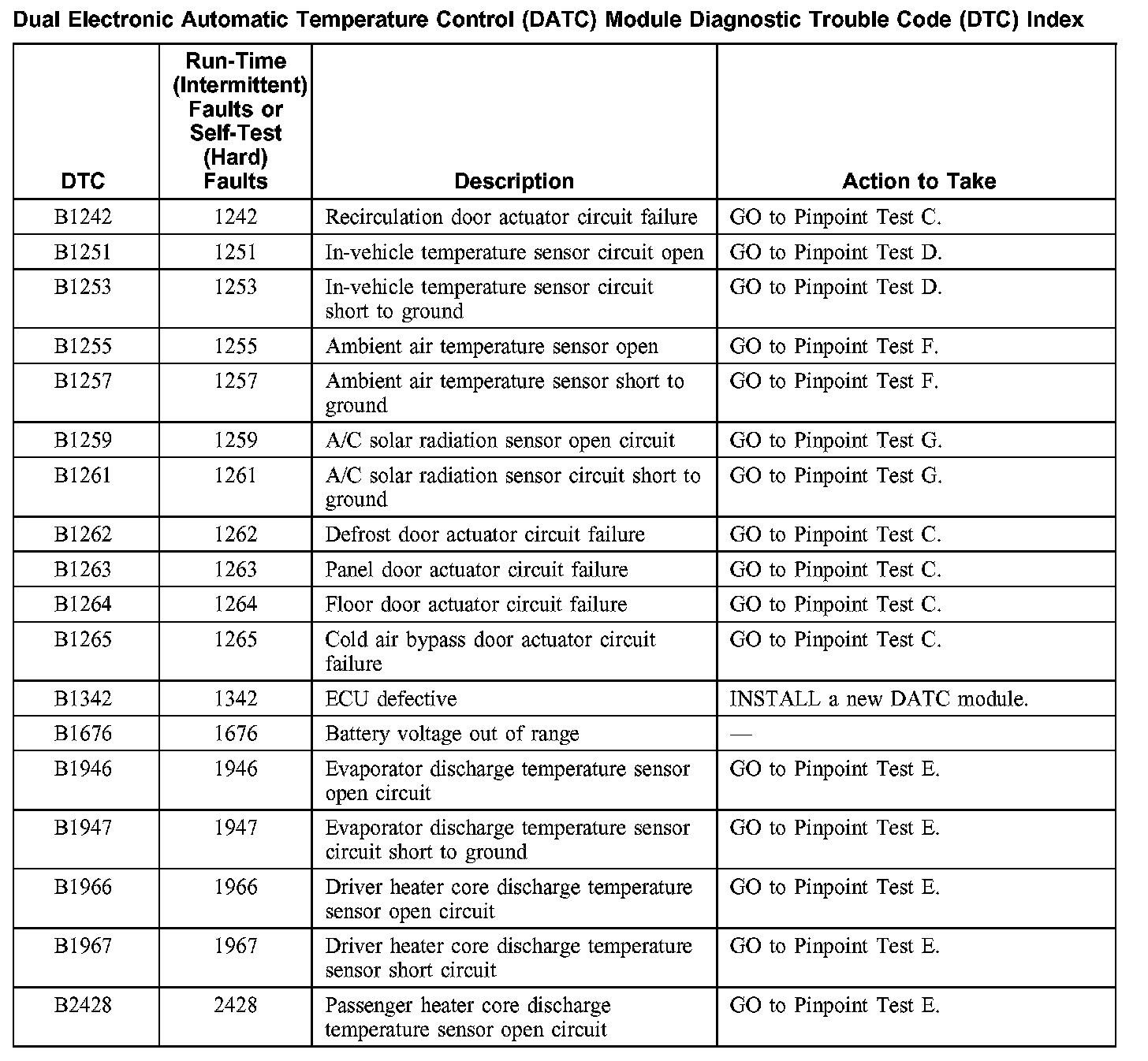 Dual Electronic Automatic Temperature Control Module (DATC) DTC Index