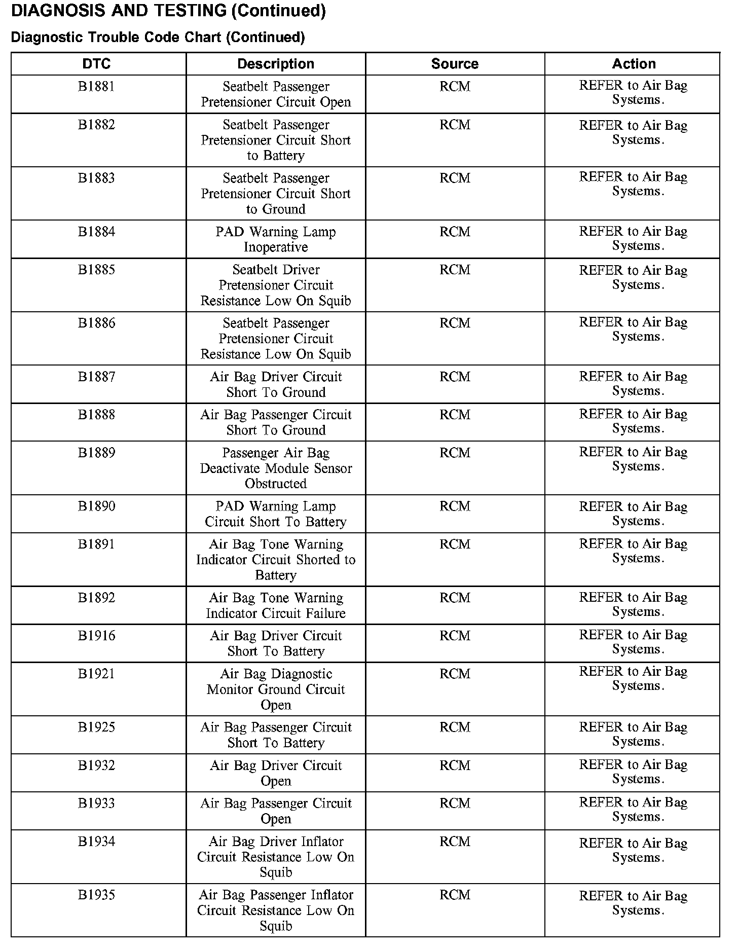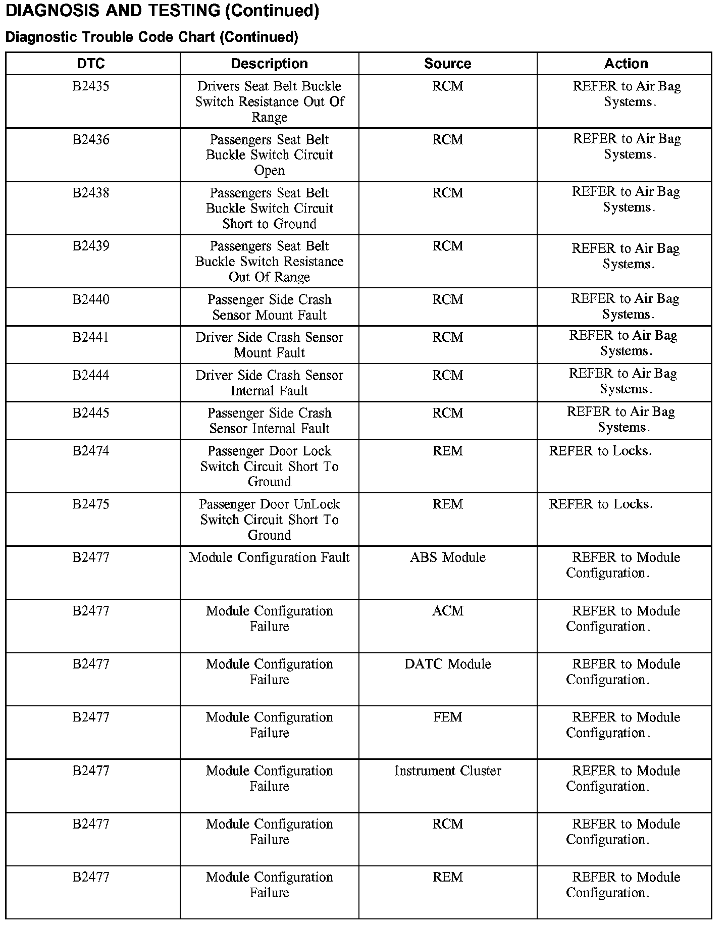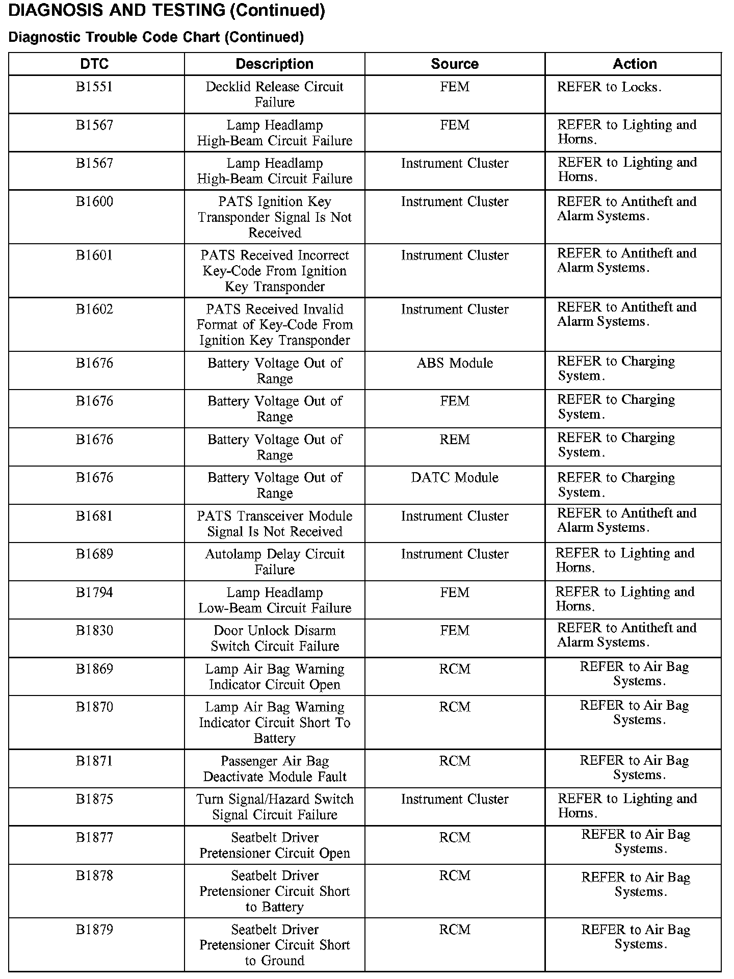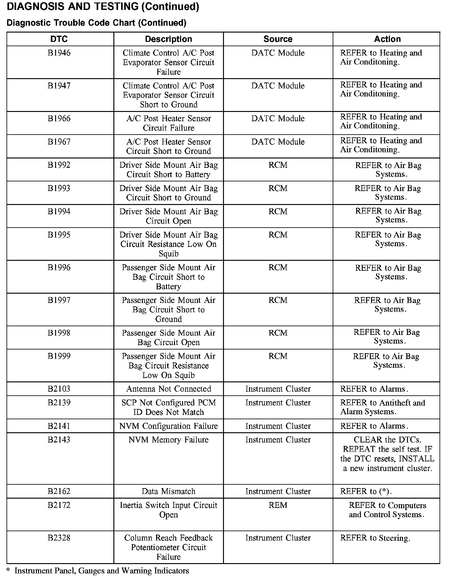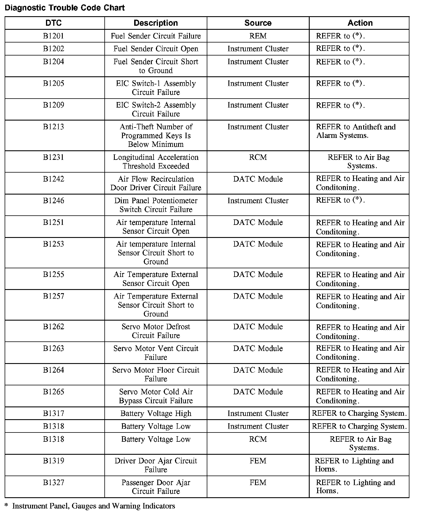 DIAGNOSTIC TROUBLE CODE CHARTDTC Chart B1201 - B1327: