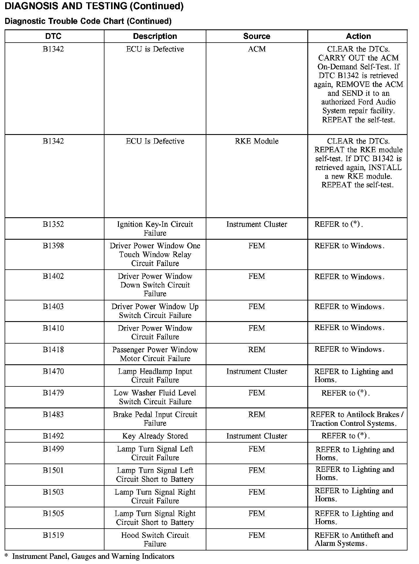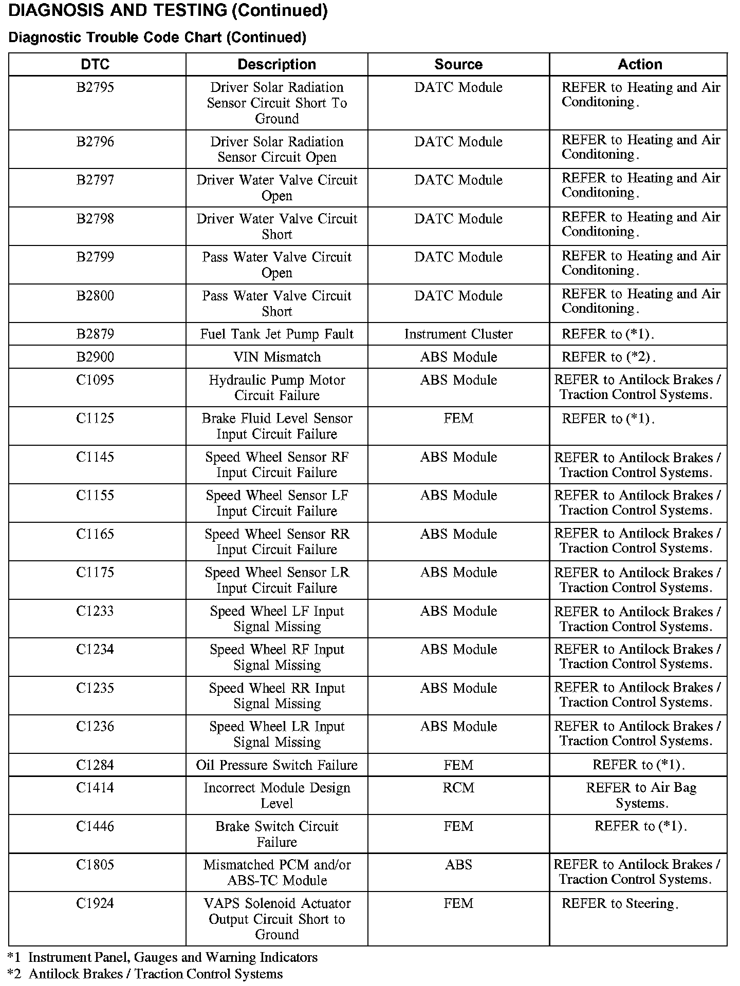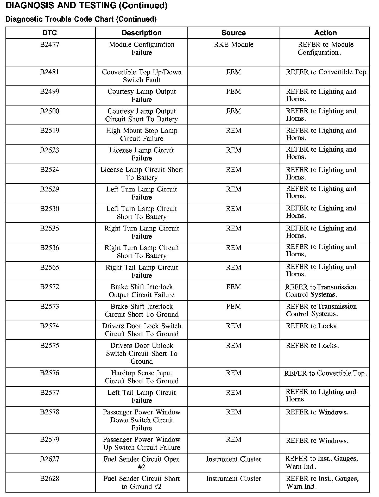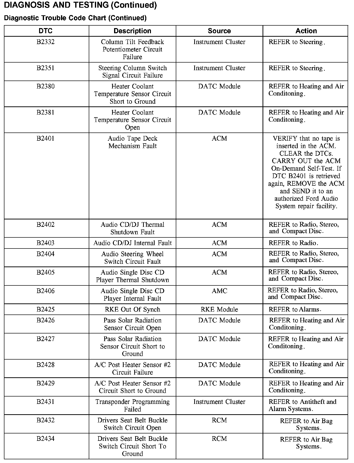 DIAGNOSTIC TROUBLE CODE CHARTDTC Chart B1201 - B1327: