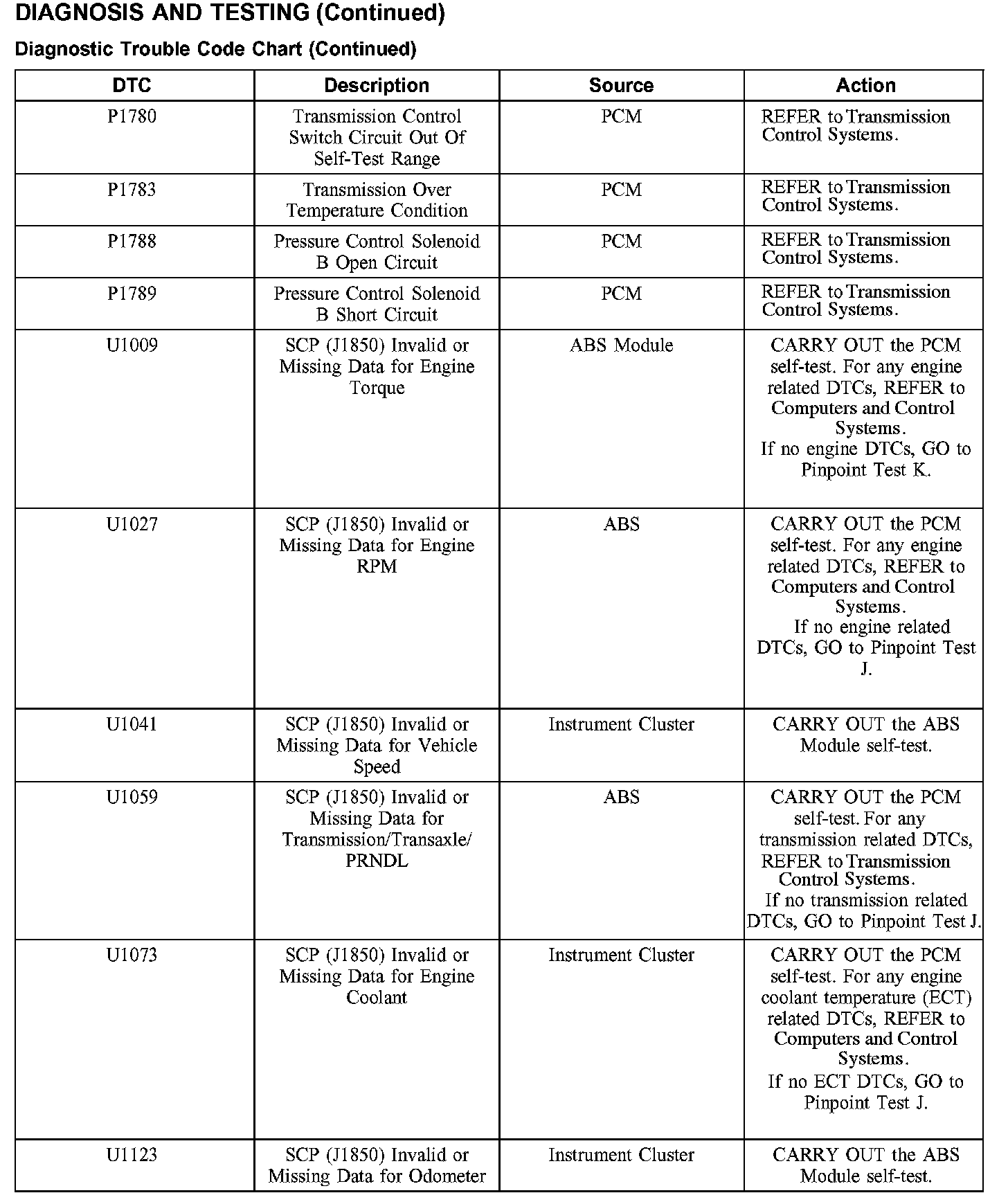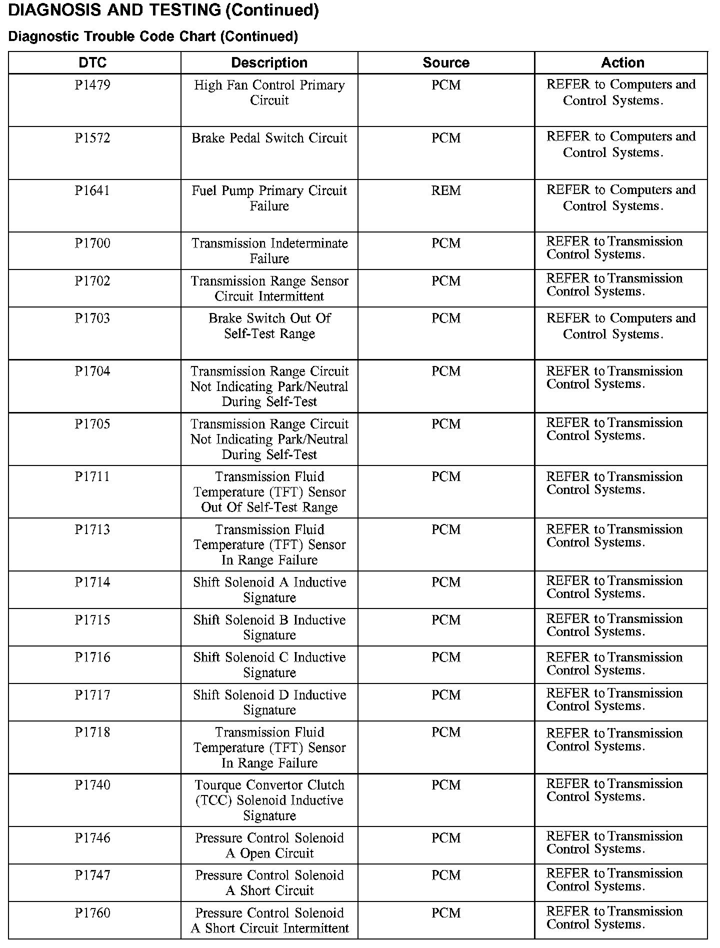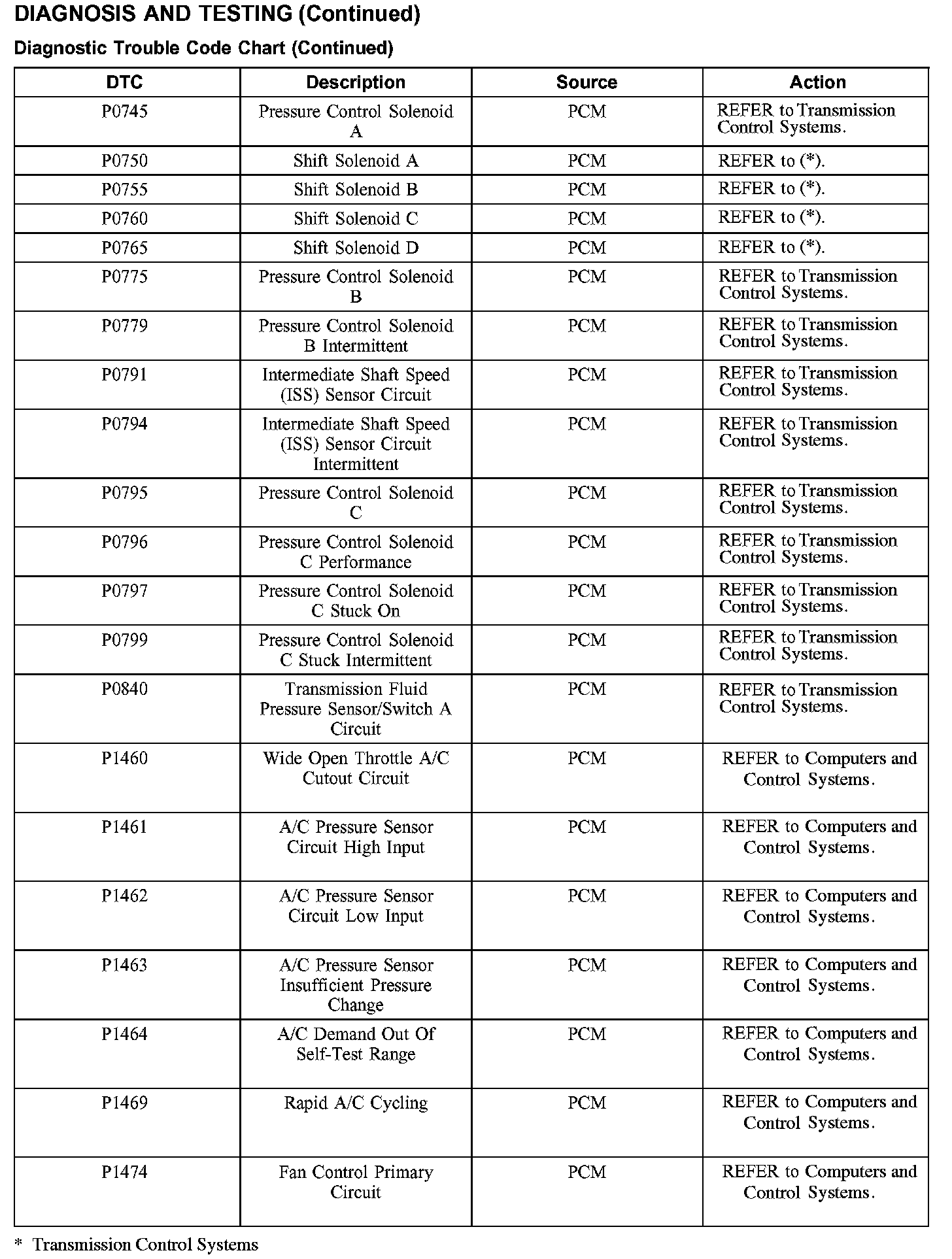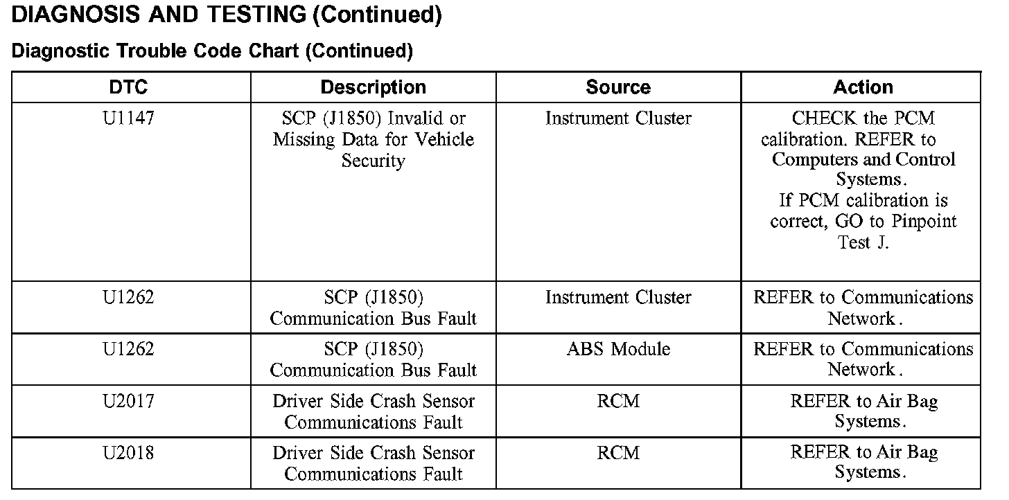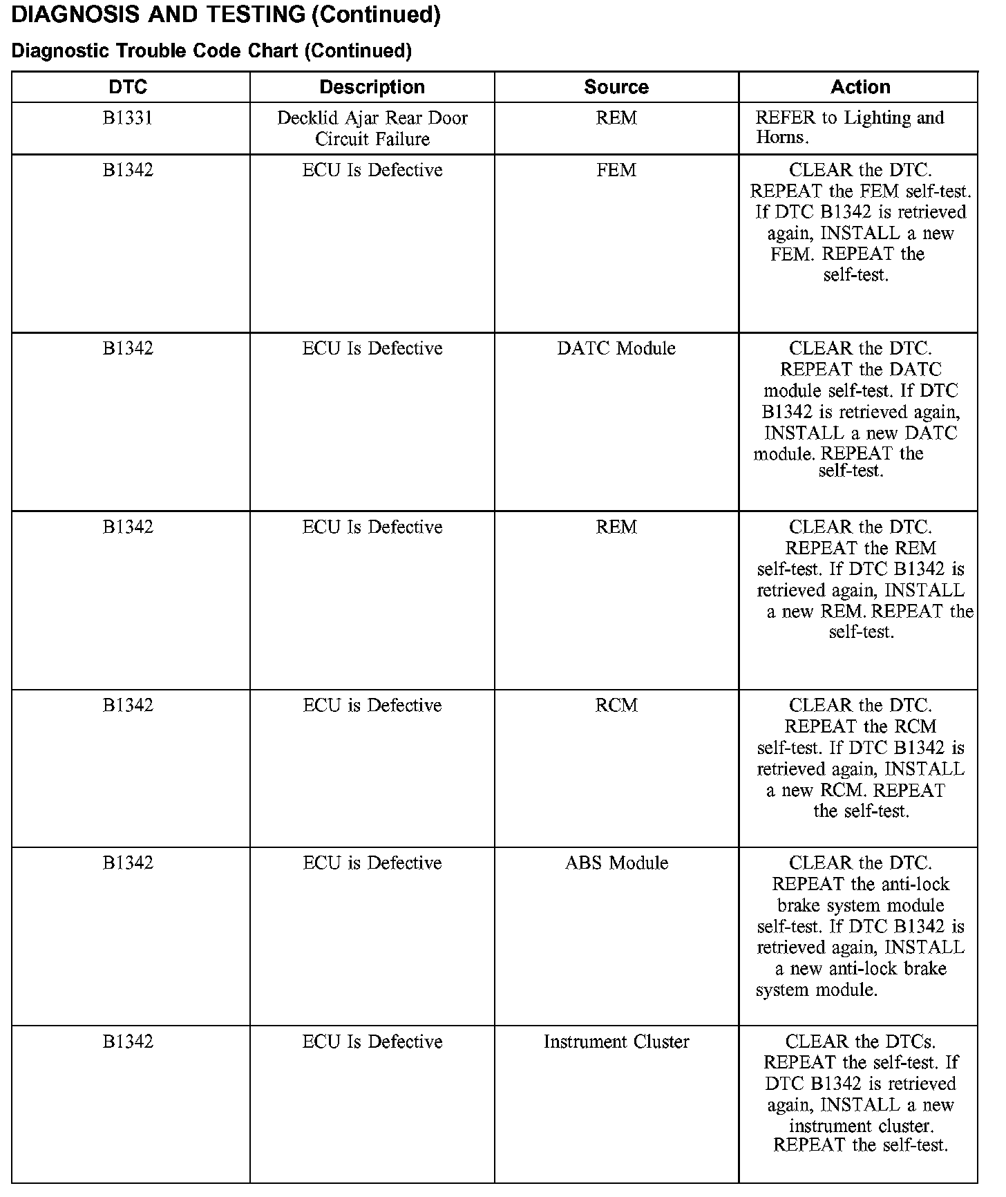 DIAGNOSTIC TROUBLE CODE CHARTDTC Chart B1201 - B1327: