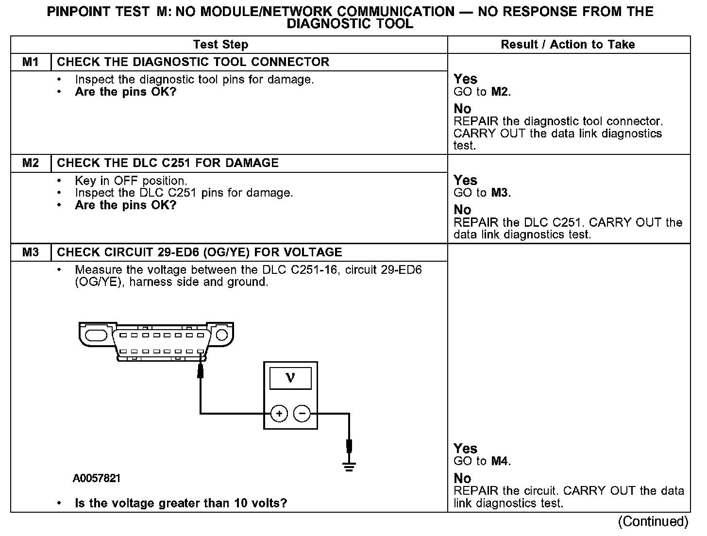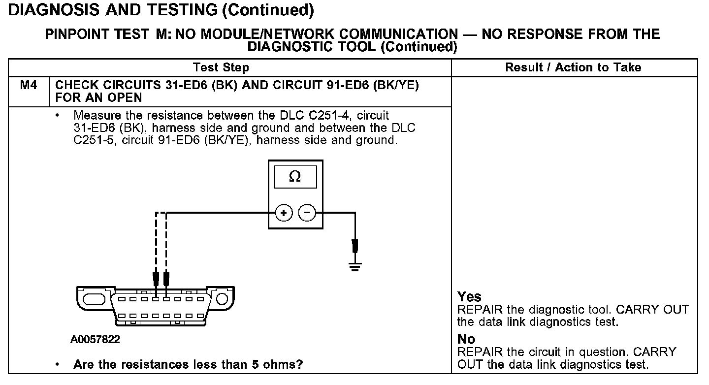 PINPOINT TEST M: NO MODULE/NETWORK COMMUNICATION - NO RESPONSE FROM THE DIAGNOSTIC TOOLTest M1-M3: