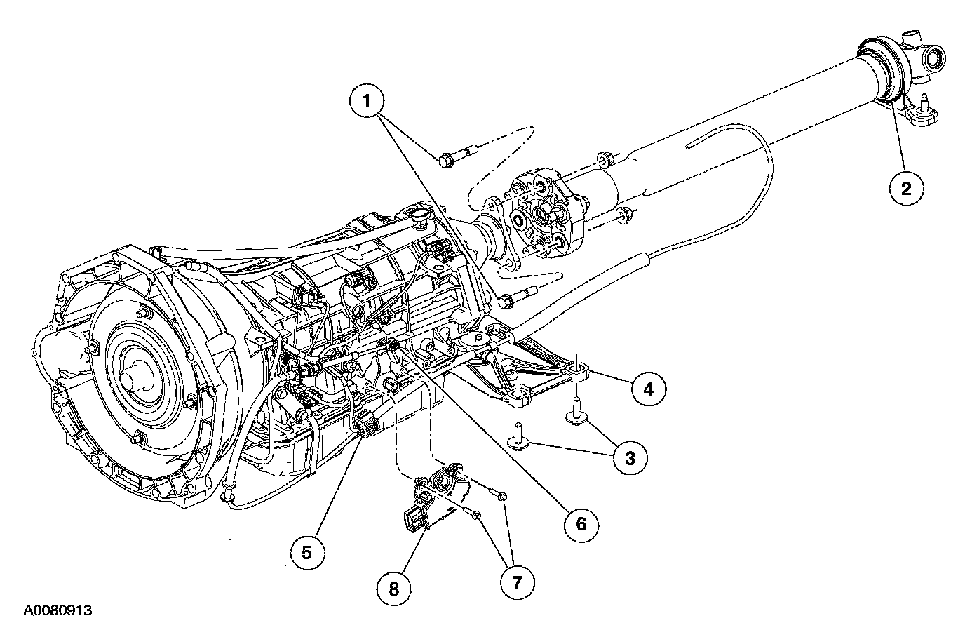 2. Remove the transmission mount and lower the transmission enough to gain access to the digital Transmission Range (TR) sensor.
