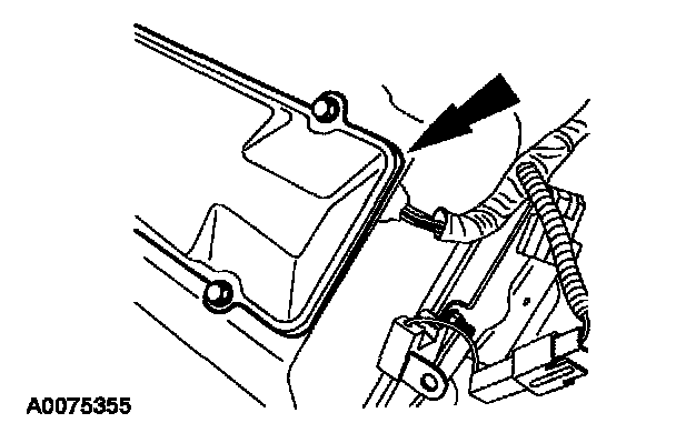 Lift up the wire harness and apply a 12.7 mm (0.5 in) bead of silicone sealer in the notch of the valve cover.