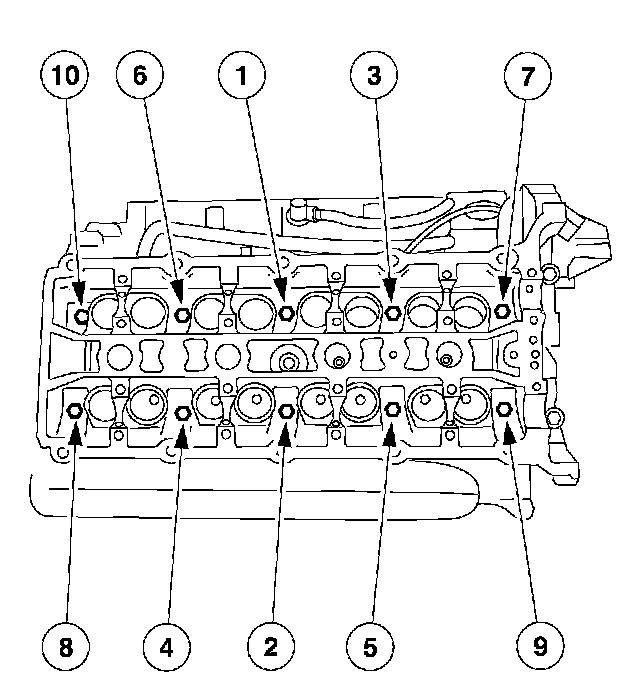 Tighten bolts 1 through 10 to 35 Nm (26 ft. lbs.).