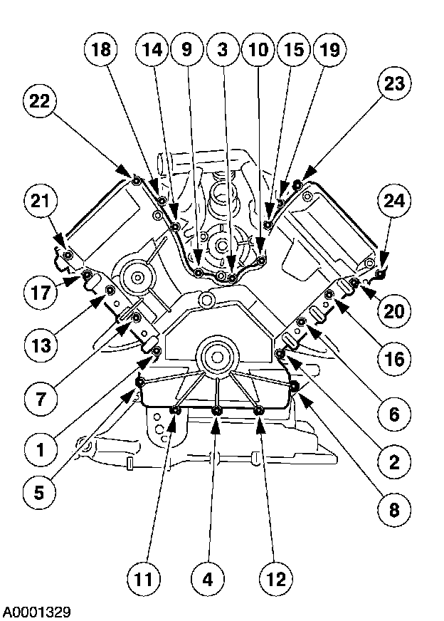 Tighten the bolts in two stages in the sequence shown.