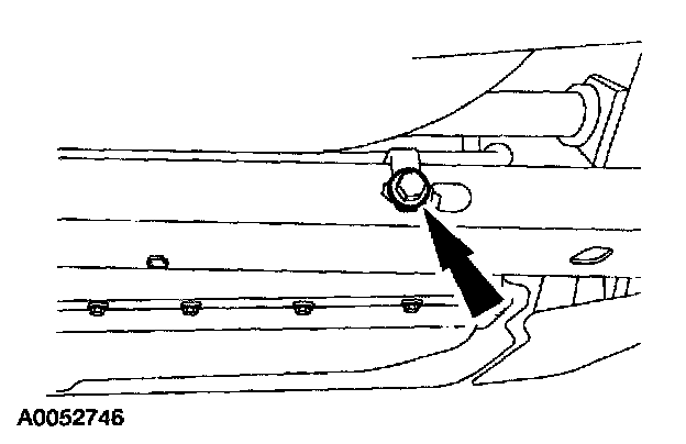 2. Remove the LH A/C suction line lower bracket bolt and position the bracket rearward.