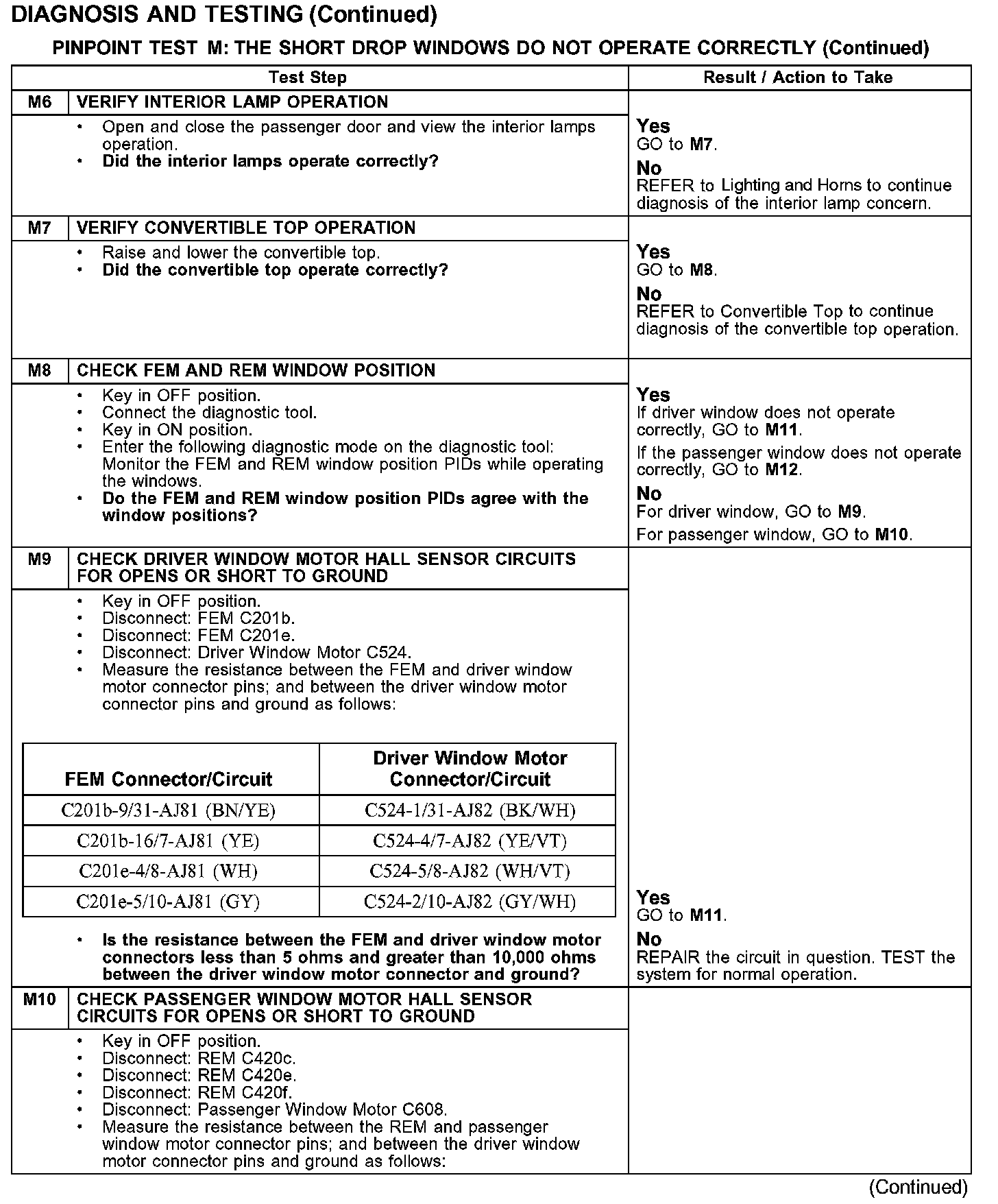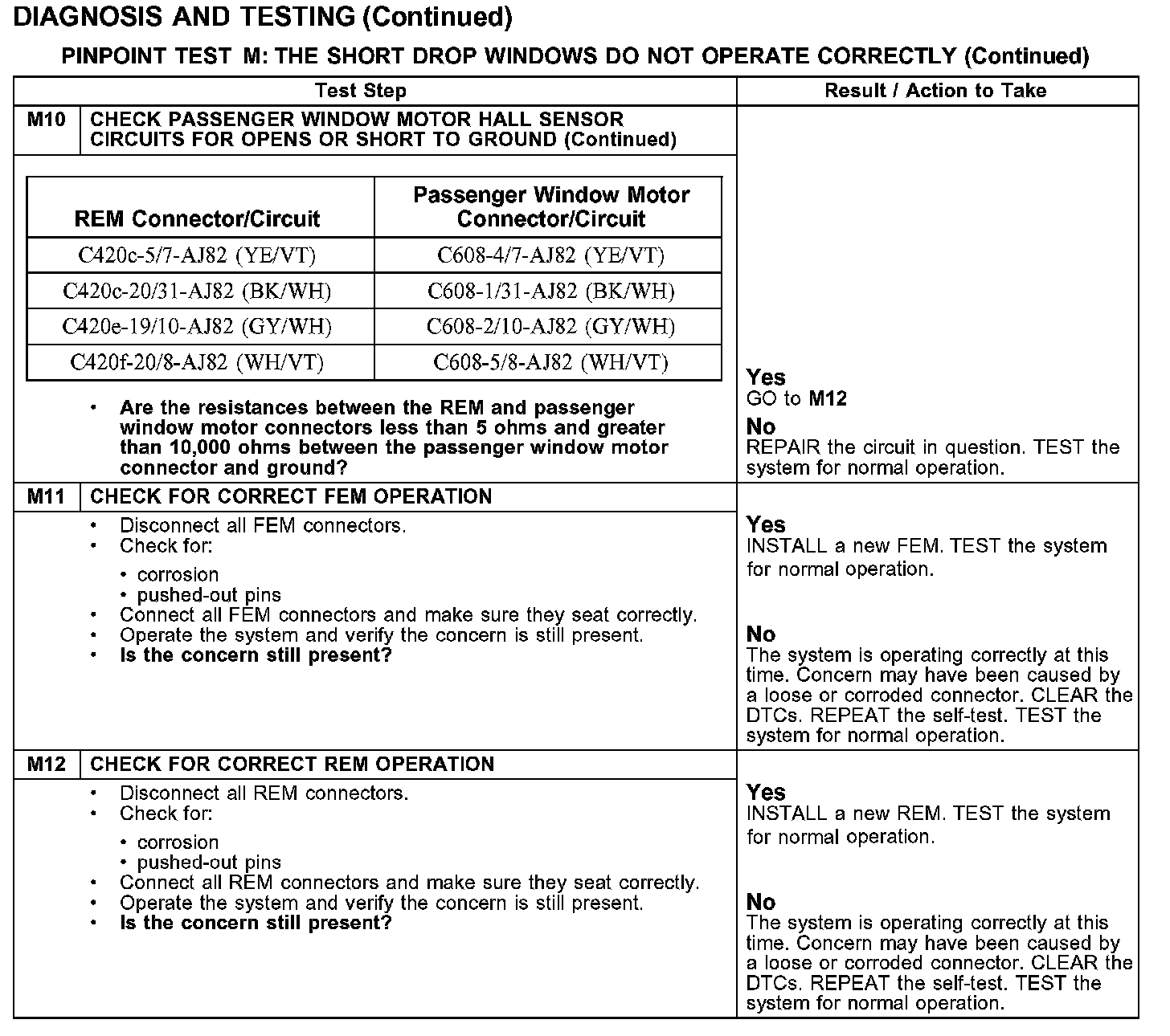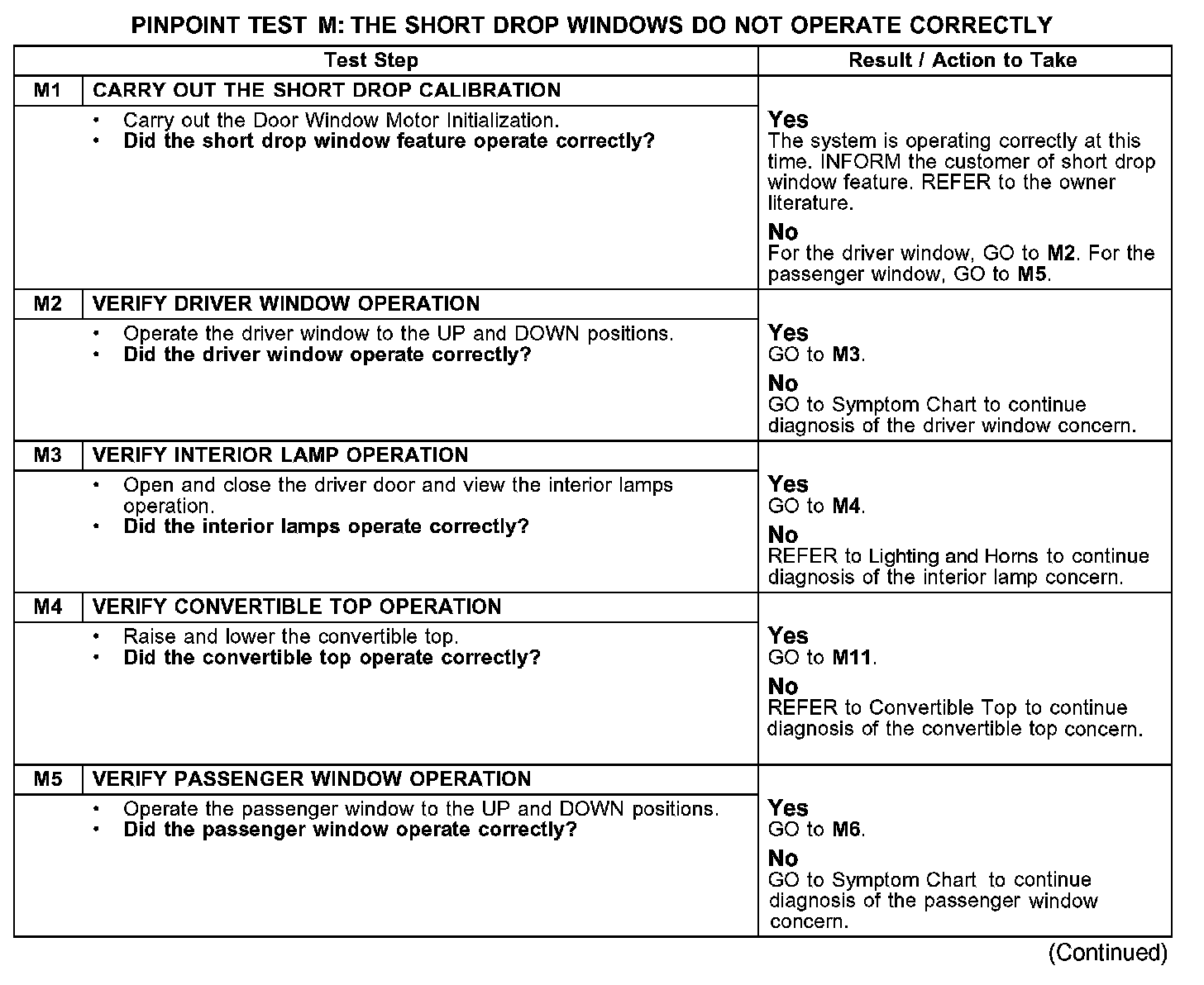 PINPOINT TEST M: THE SHORT DROP WINDOWS DO NOT OPERATE CORRECTLYTest M1-M5: