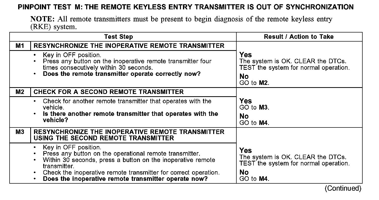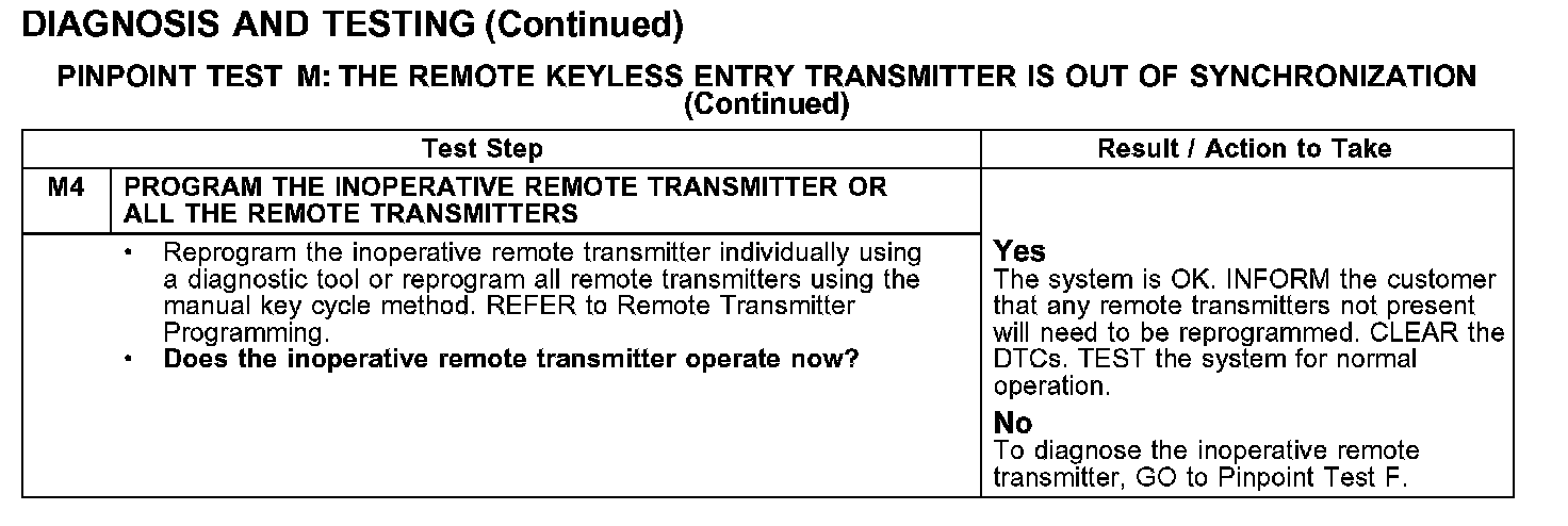 PINPOINT TEST M: THE REMOTE KEYLESS ENTRY TRANSMITTER IS OUT OF SYNCHRONIZATION