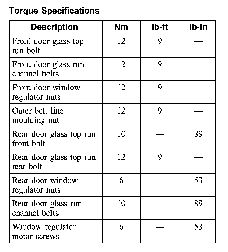 Torque Specifications: