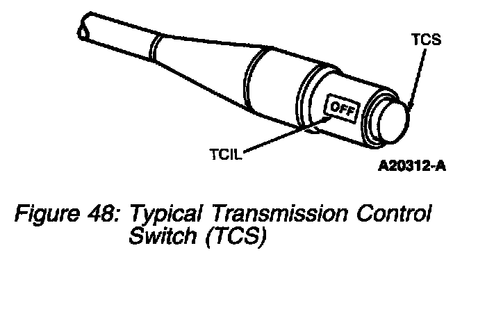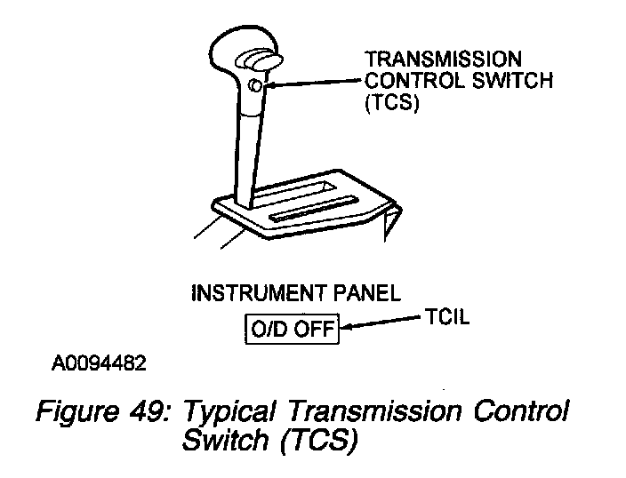 The TCS signals the PCM with VPWR whenever the TCS is pressed. On vehicles with this feature, the transmission control indicator lamp (TCIL) illuminates when the TCS is cycled to disengage overdrive. The operator of the vehicle controls. the position of the TCS.