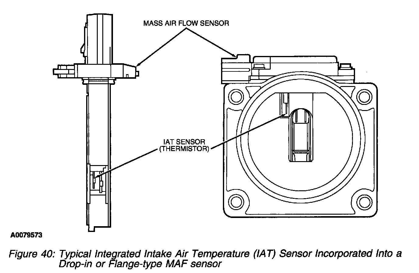 Typical Integrated Intake Air Temperature (IAT) Sensor Incorporated Into A Drop-in Or Flange Type MAF Sensor: