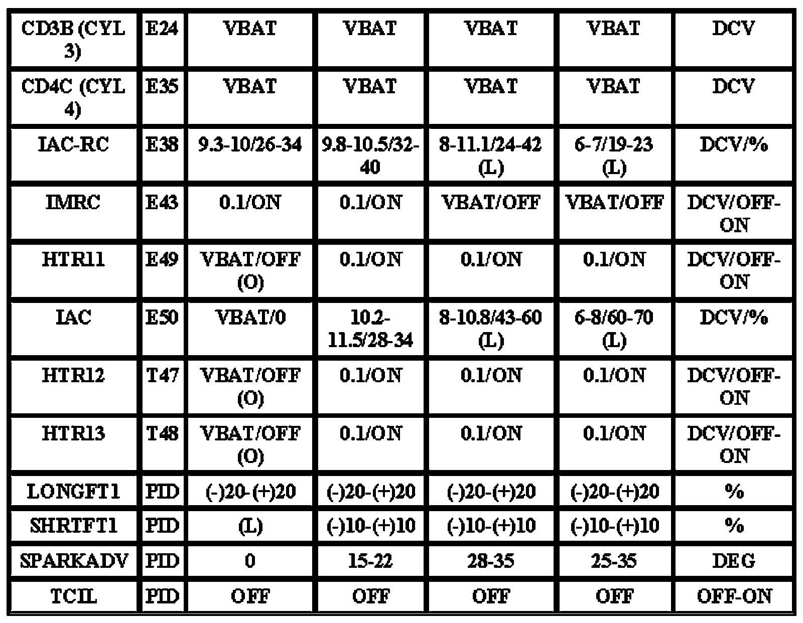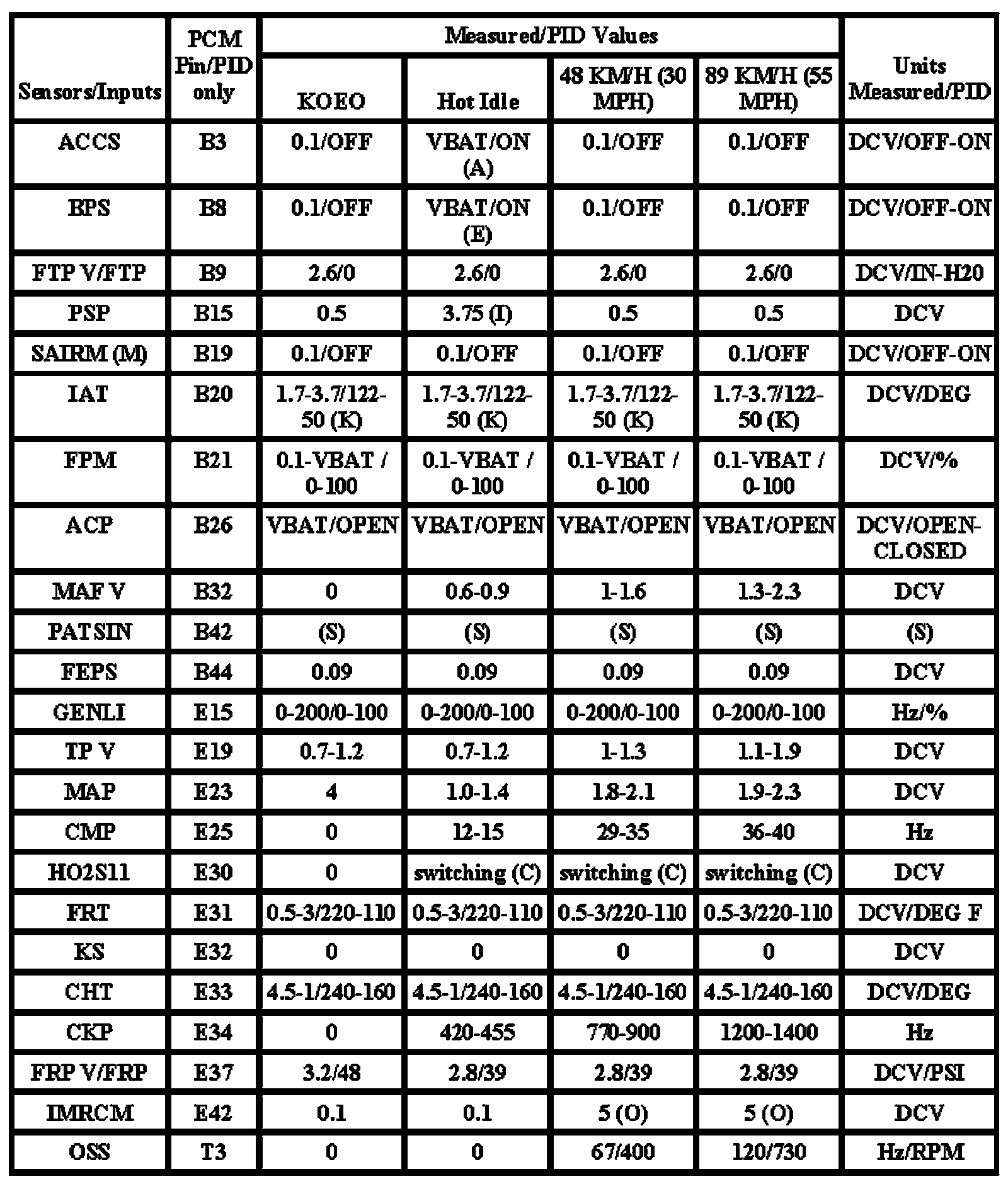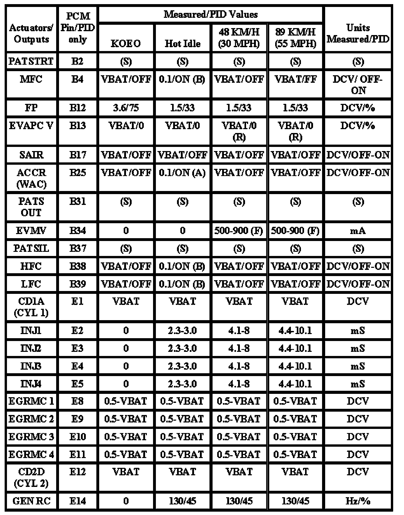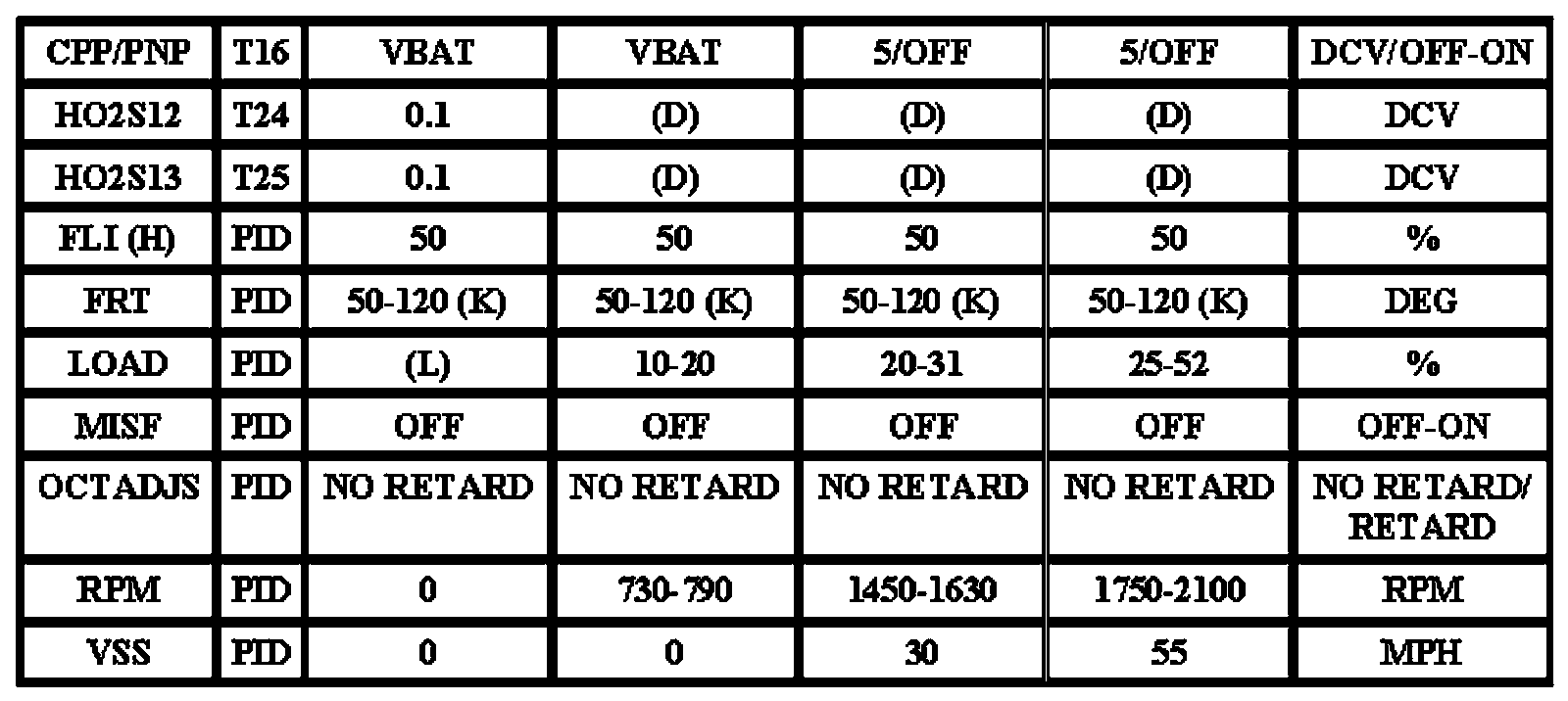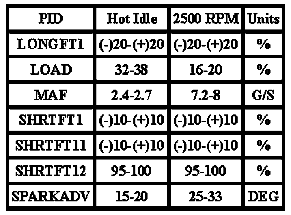 Note: All generic OBD readings under no load (PARK or NEUTRAL).