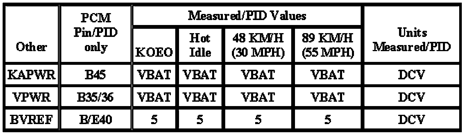 Note: All generic OBD readings under no load (PARK or NEUTRAL).