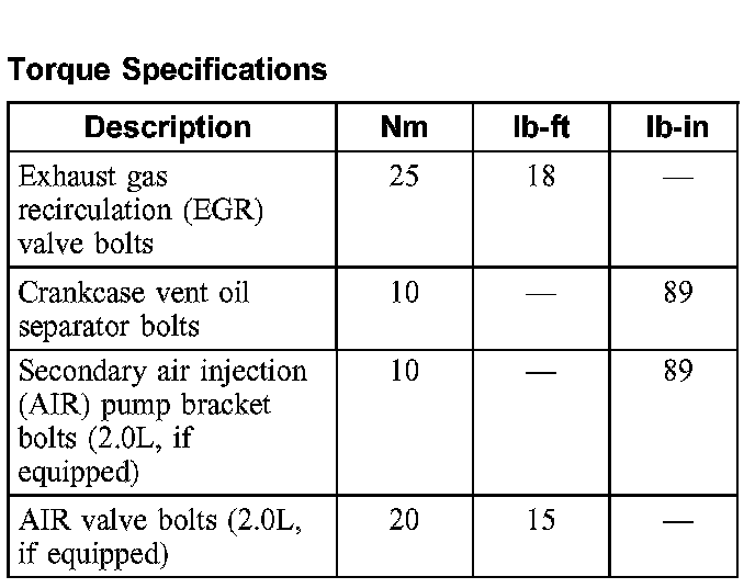 Torque Specifications: