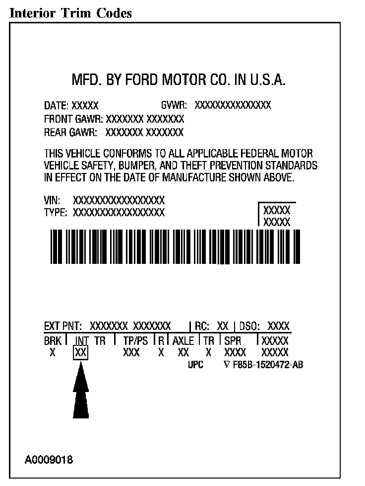 The interior trim codes are listed. The first digit listed indicates the seat and fabric style. The second digit listed indicates the interior trim color.