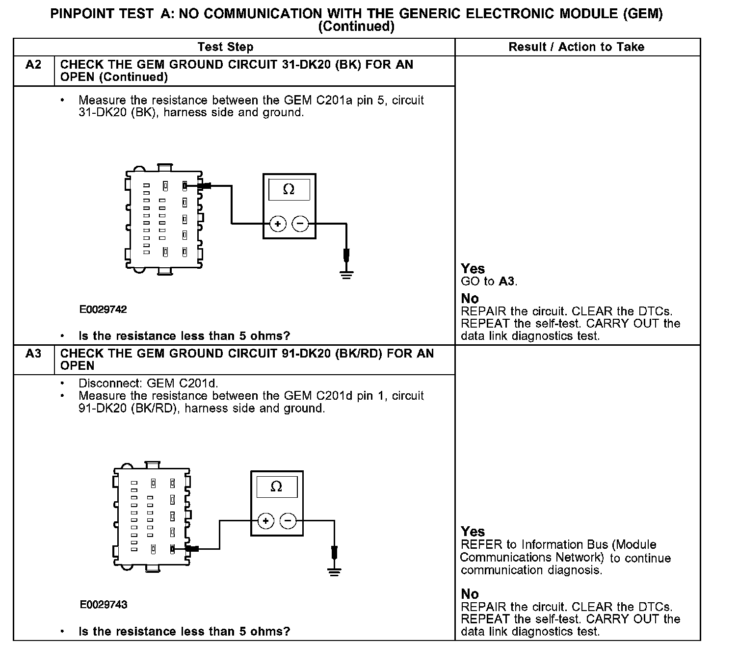 PINPOINT TEST A: NO COMMUNICATION WITH THE GENERIC ELECTRONIC MODULE (GEM)