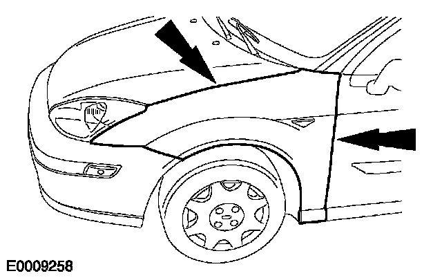 - Adjust the clearance between the fender and the hood, open the hood and tighten the front bolt on the edge of the fender.