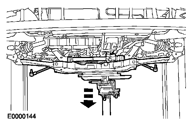 NOTE: Separate the ball joint from the wheel knuckle as the subframe is lowered.