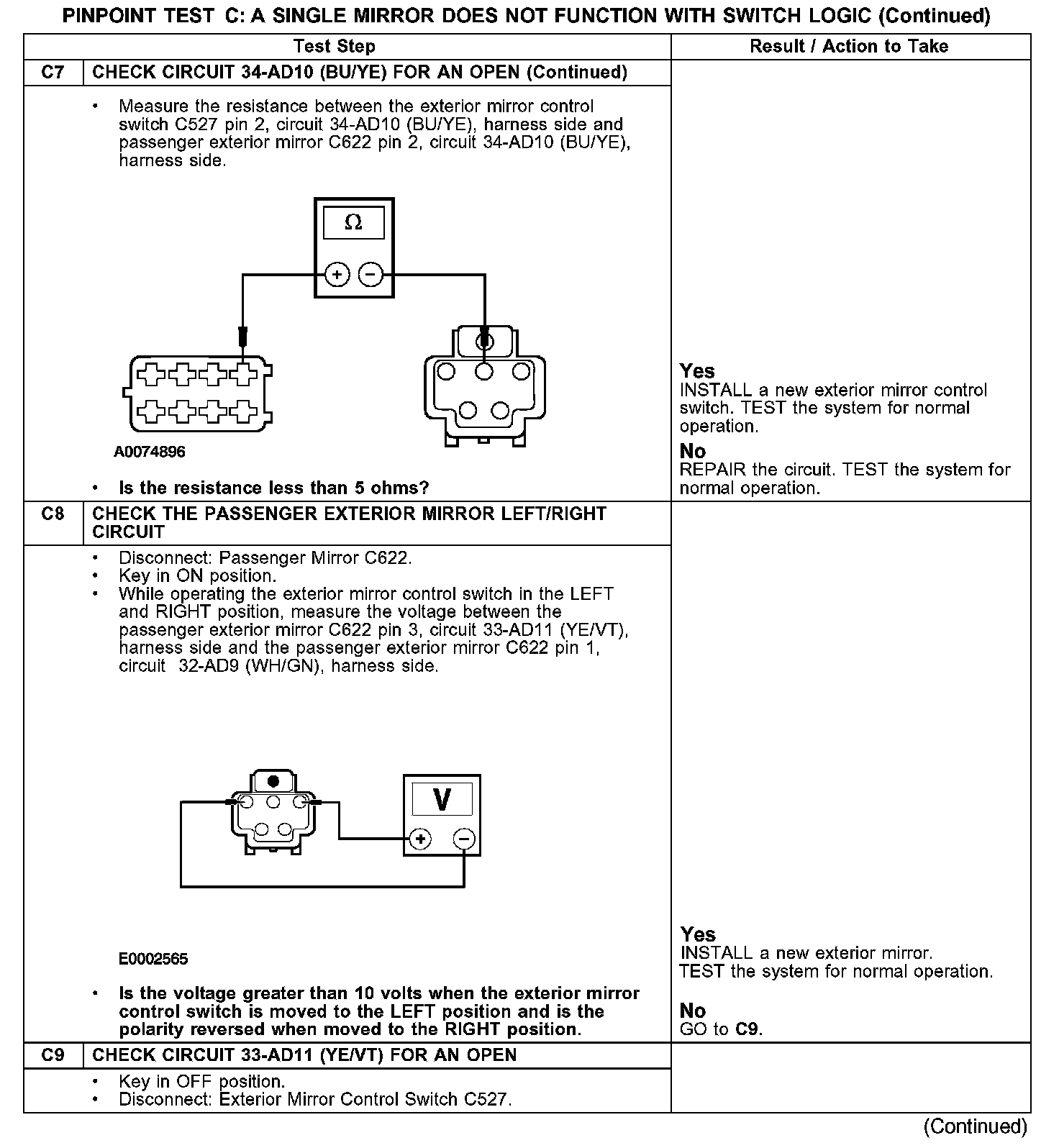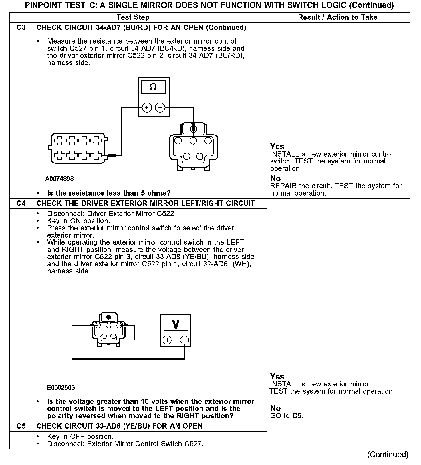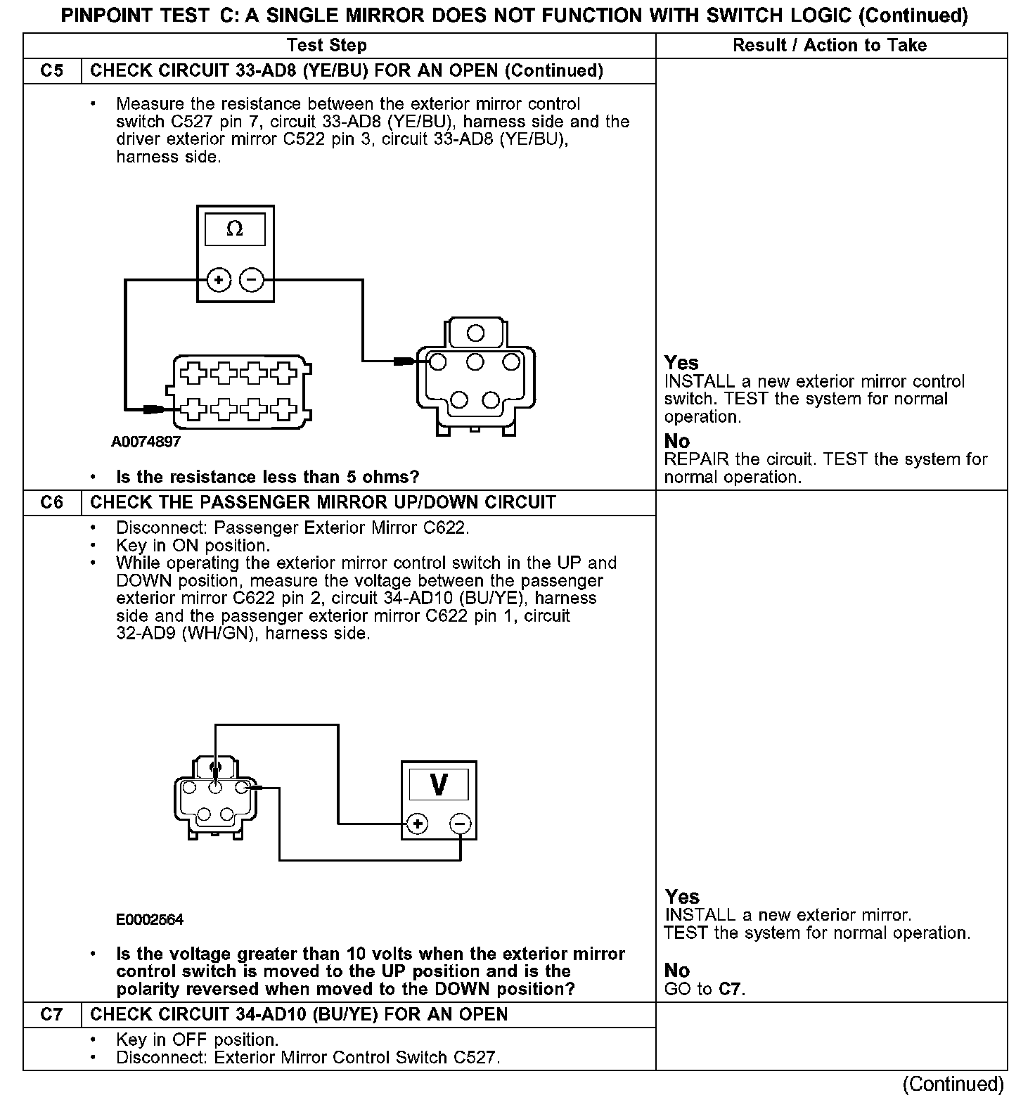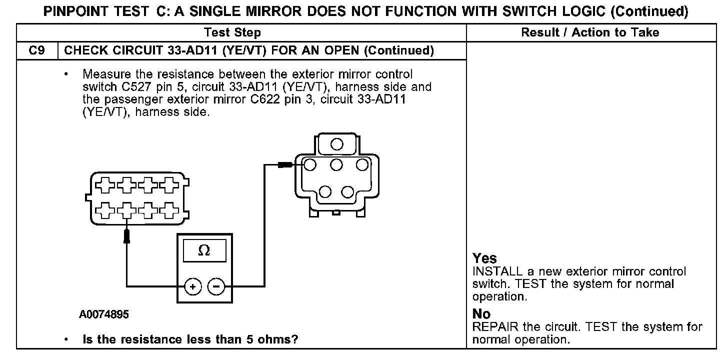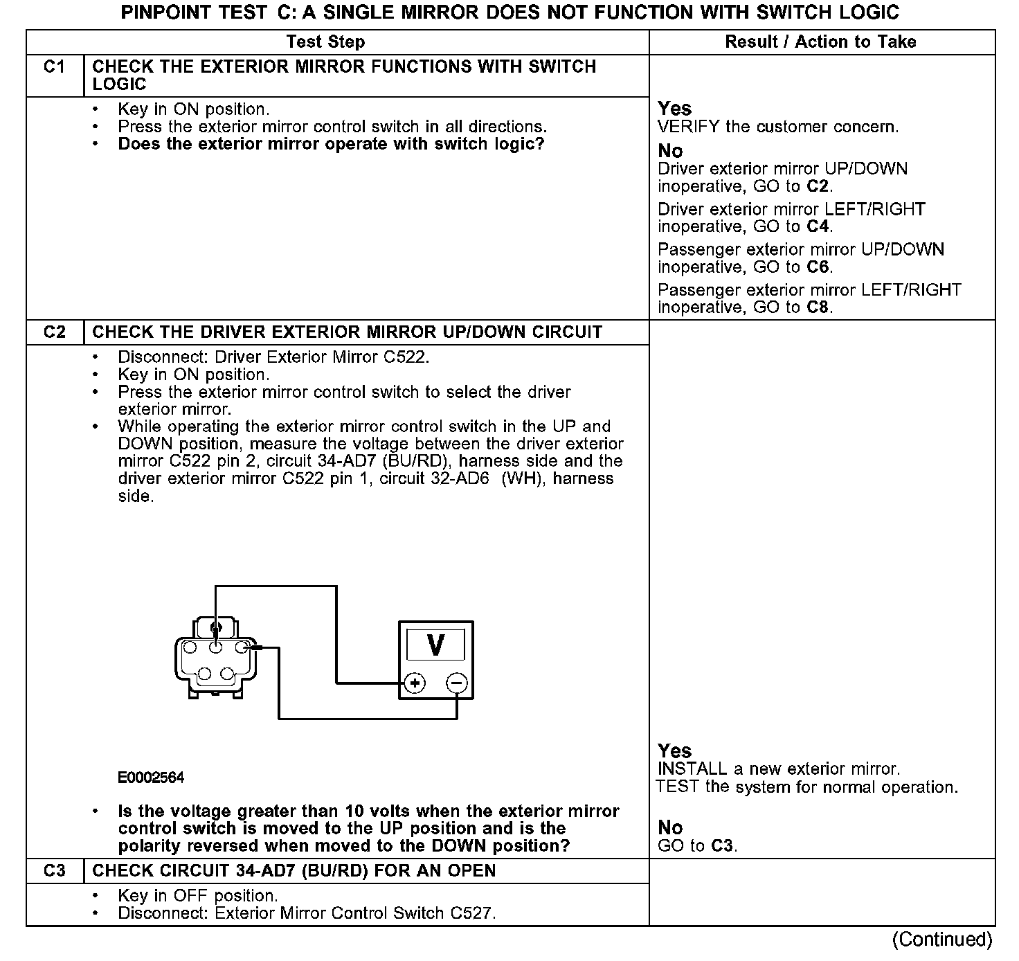 PINPOINT TEST C: A SINGLE MIRROR DOES NOT FUNCTION WITH SWITCH LOGIC