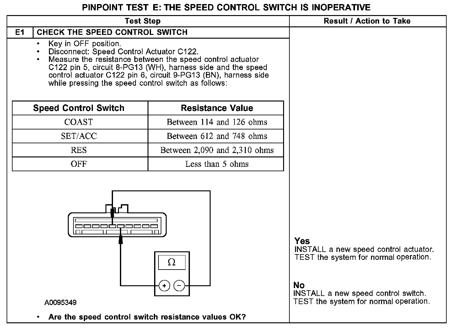 PINPOINT TEST E: THE SPEED CONTROL SWITCH IS INOPERATIVE