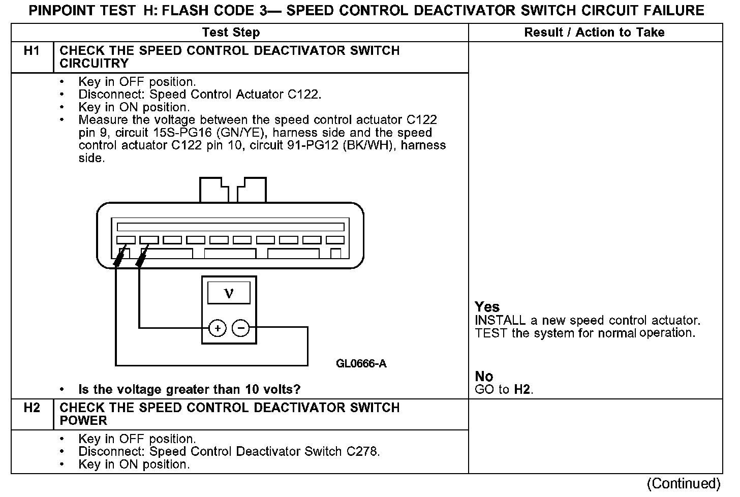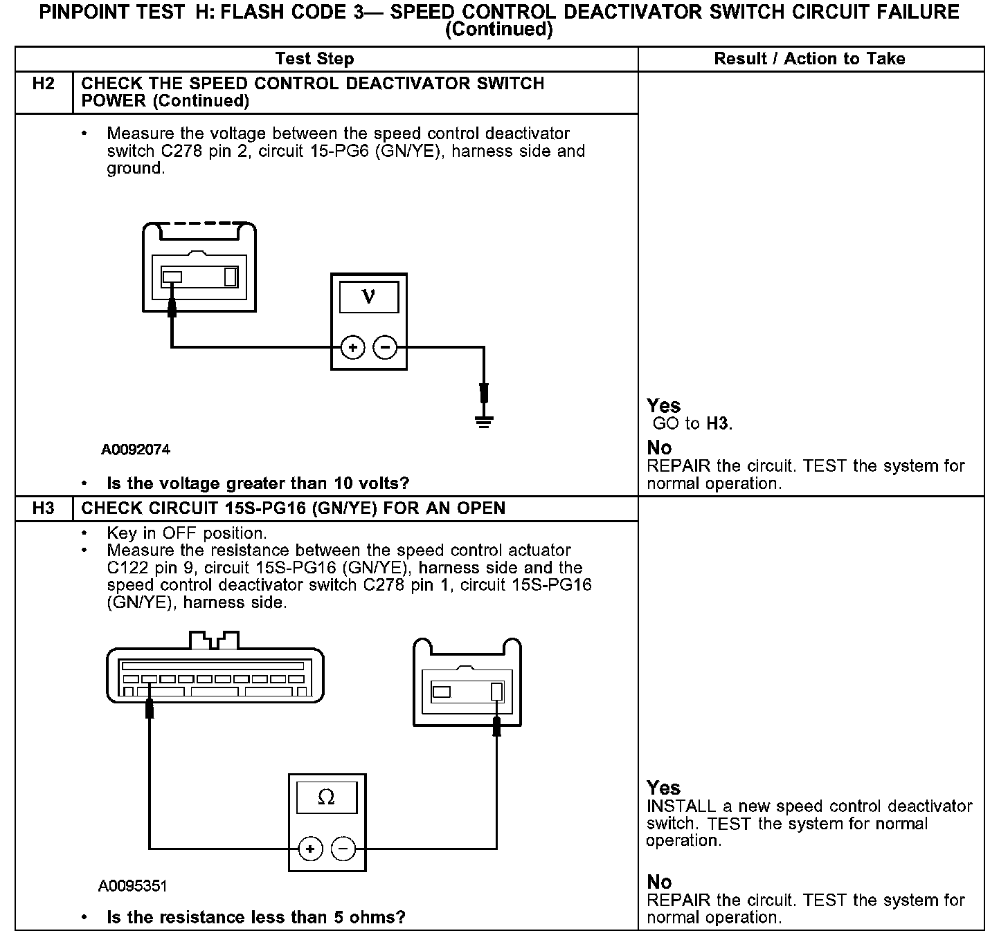 PINPOINT TEST H: FLASH CODE 3 - SPEED CONTROL DEACTIVATOR SWITCH CIRCUIT FAILURE