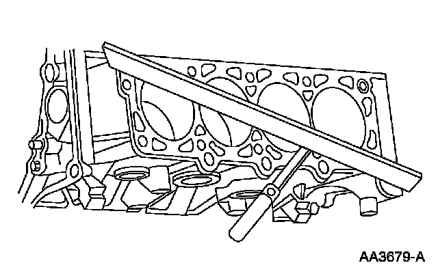 Use a straight edge and a feeler gauge to inspect the cylinder block for flatness. If the cylinder block is distorted, install a new short block assembly.