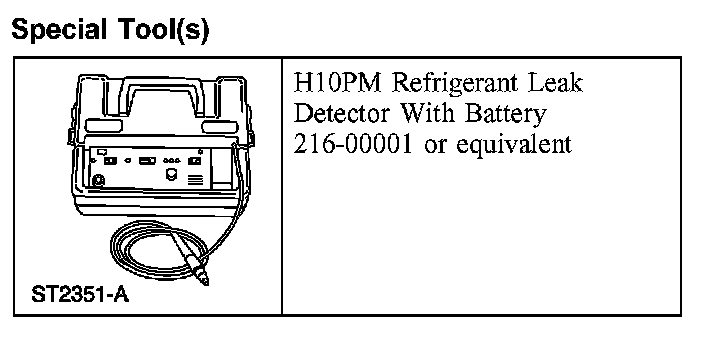 Leak test the refrigerant system using the Refrigerant Leak Detector. Follow the instructions included with the leak detector for handling and operation techniques.