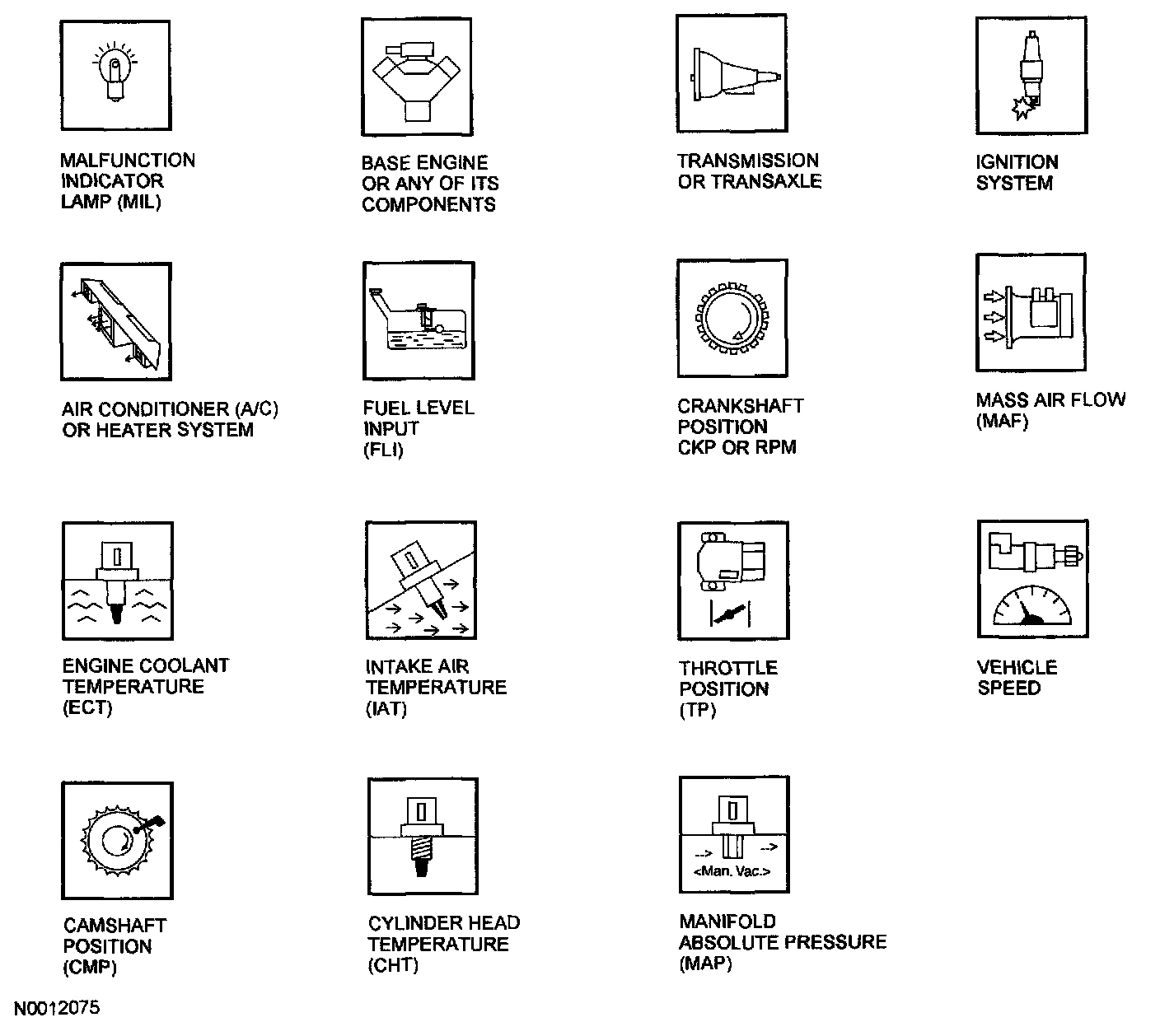 These icons are used in the illustrations of the On-Board Diagnostic monitors.