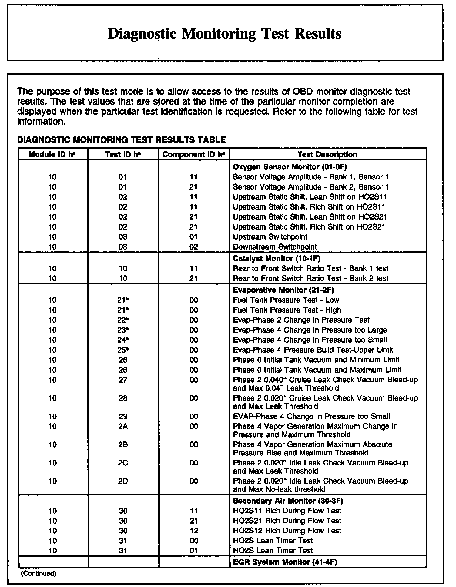 Diagnostic Monitoring Test Results (Part 2):