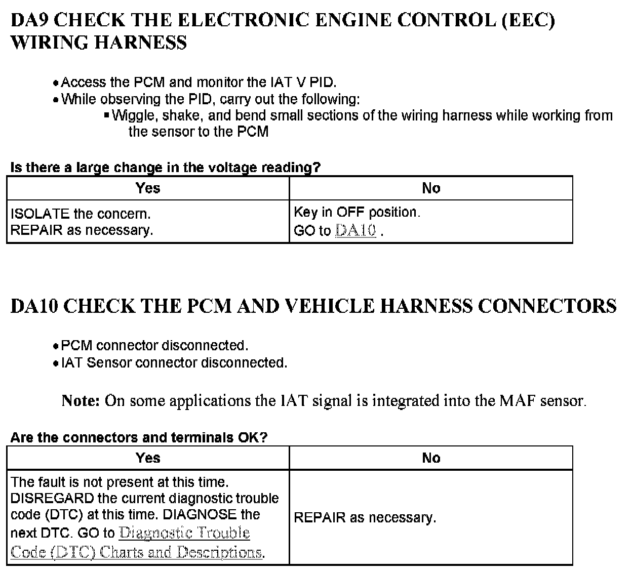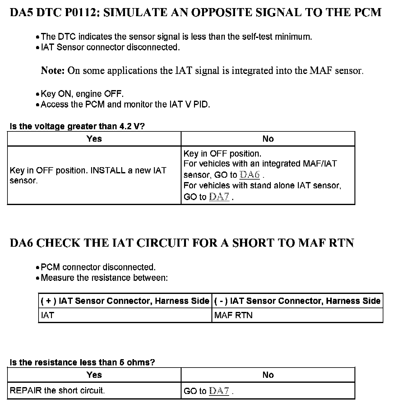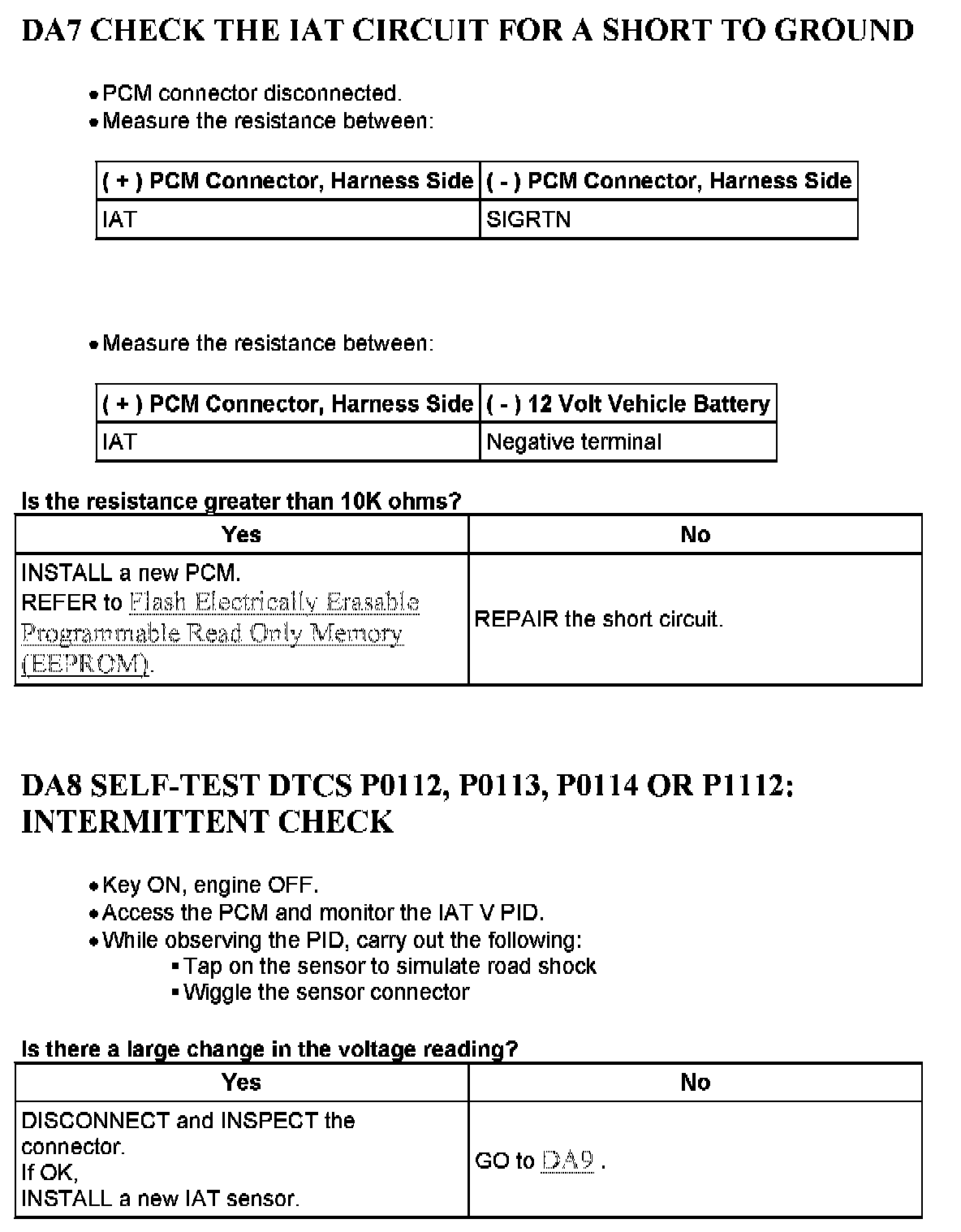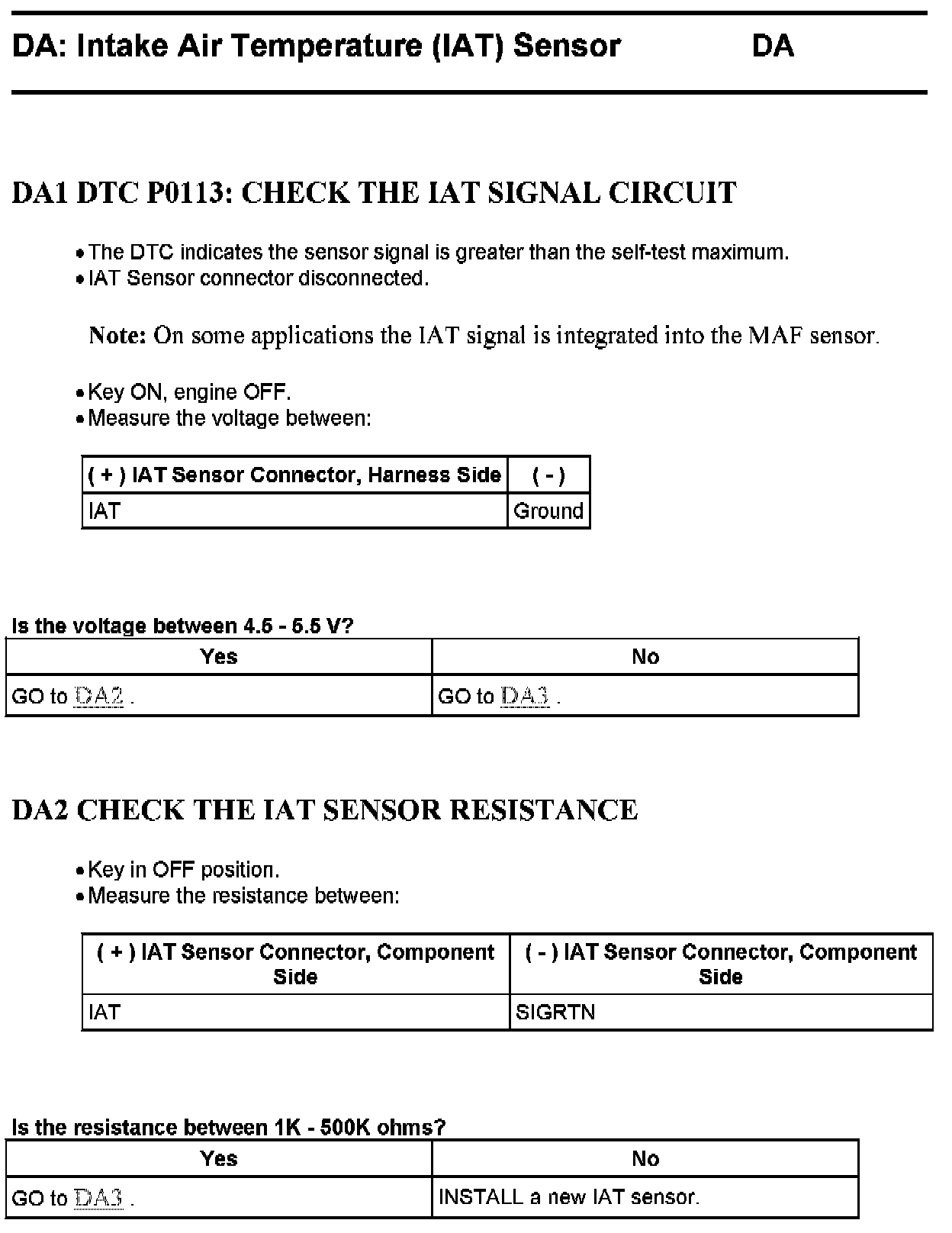 Tests DA: Intake Air Temperature (IAT) Sensor