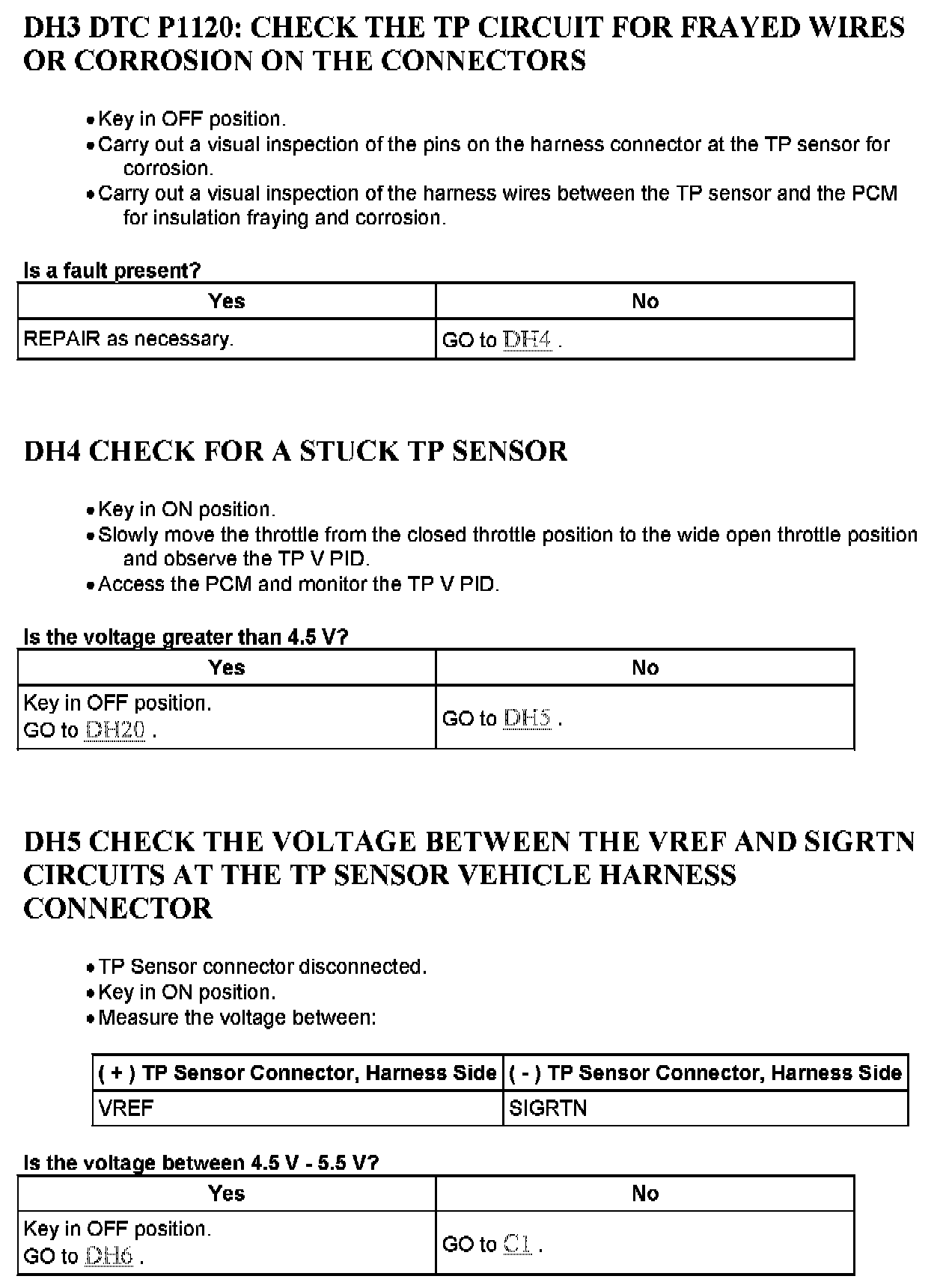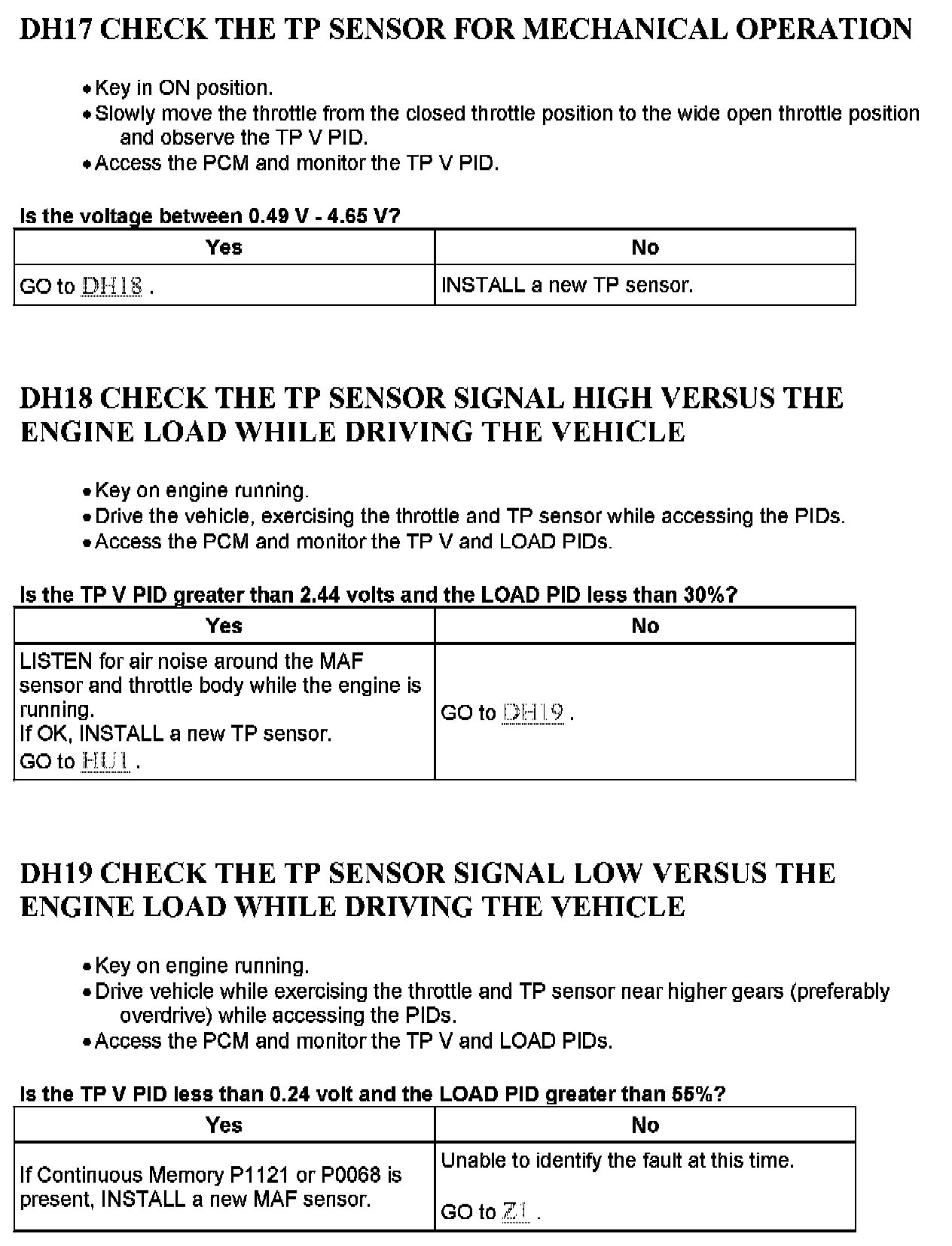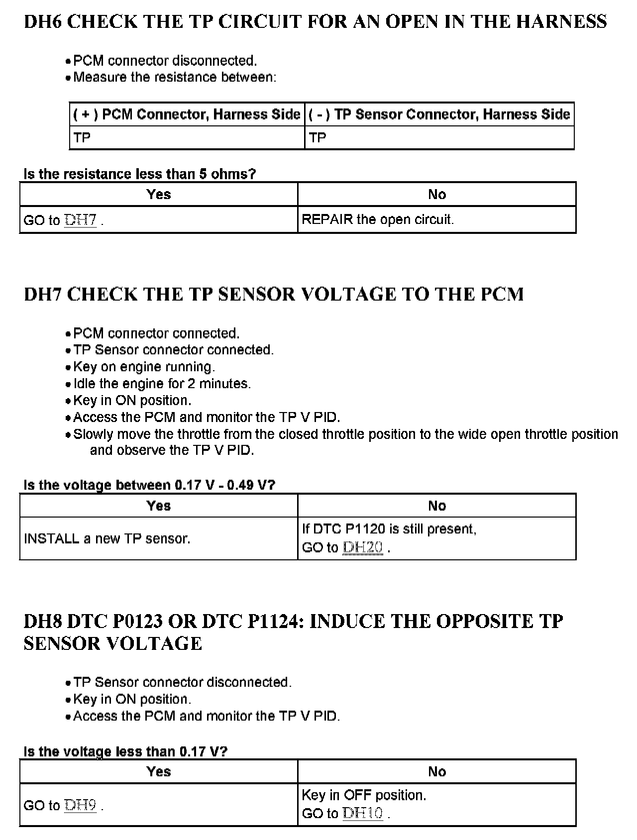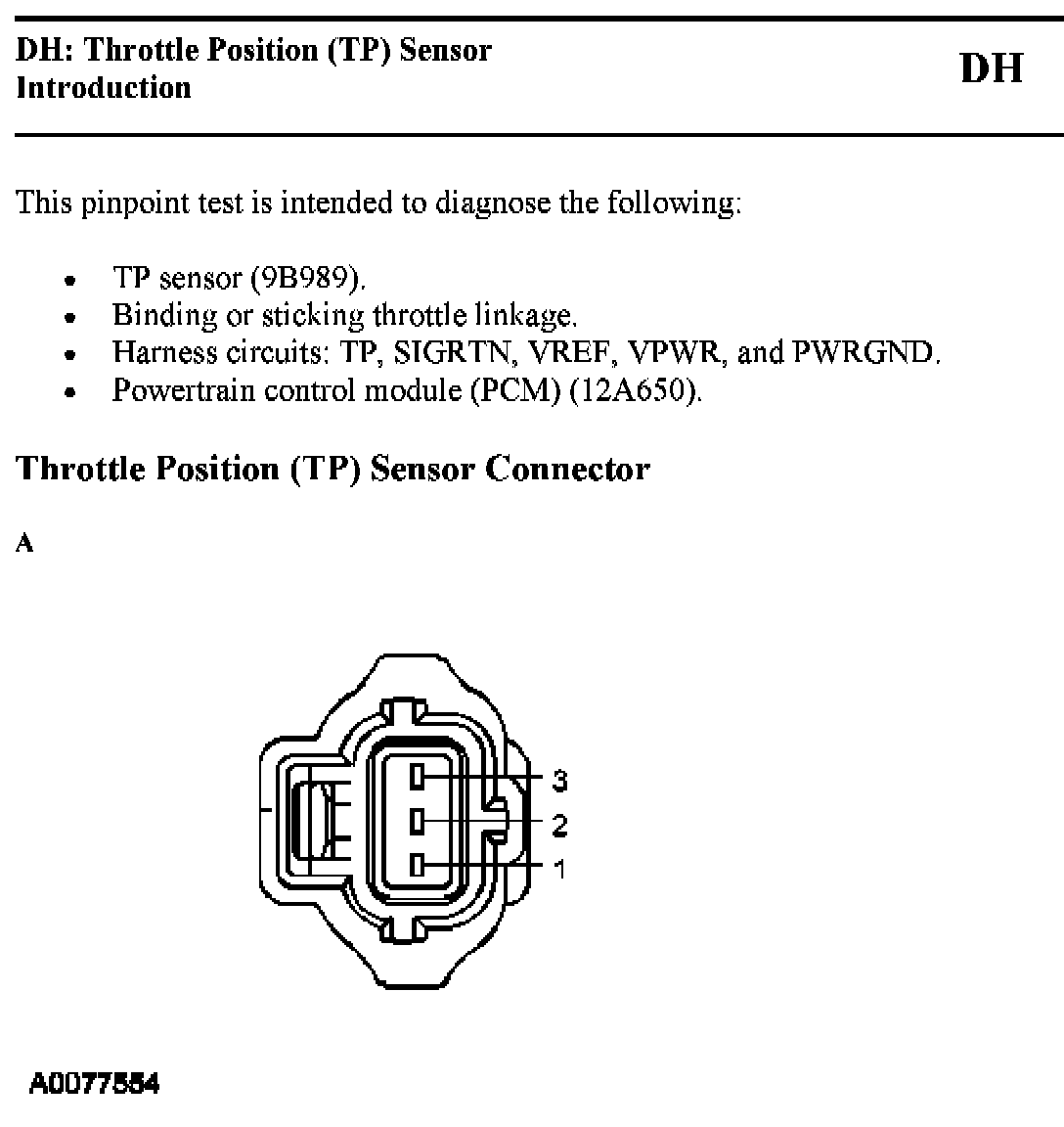 PINPOINT TEST DH: THROTTLE POSITION (TP) SENSOR