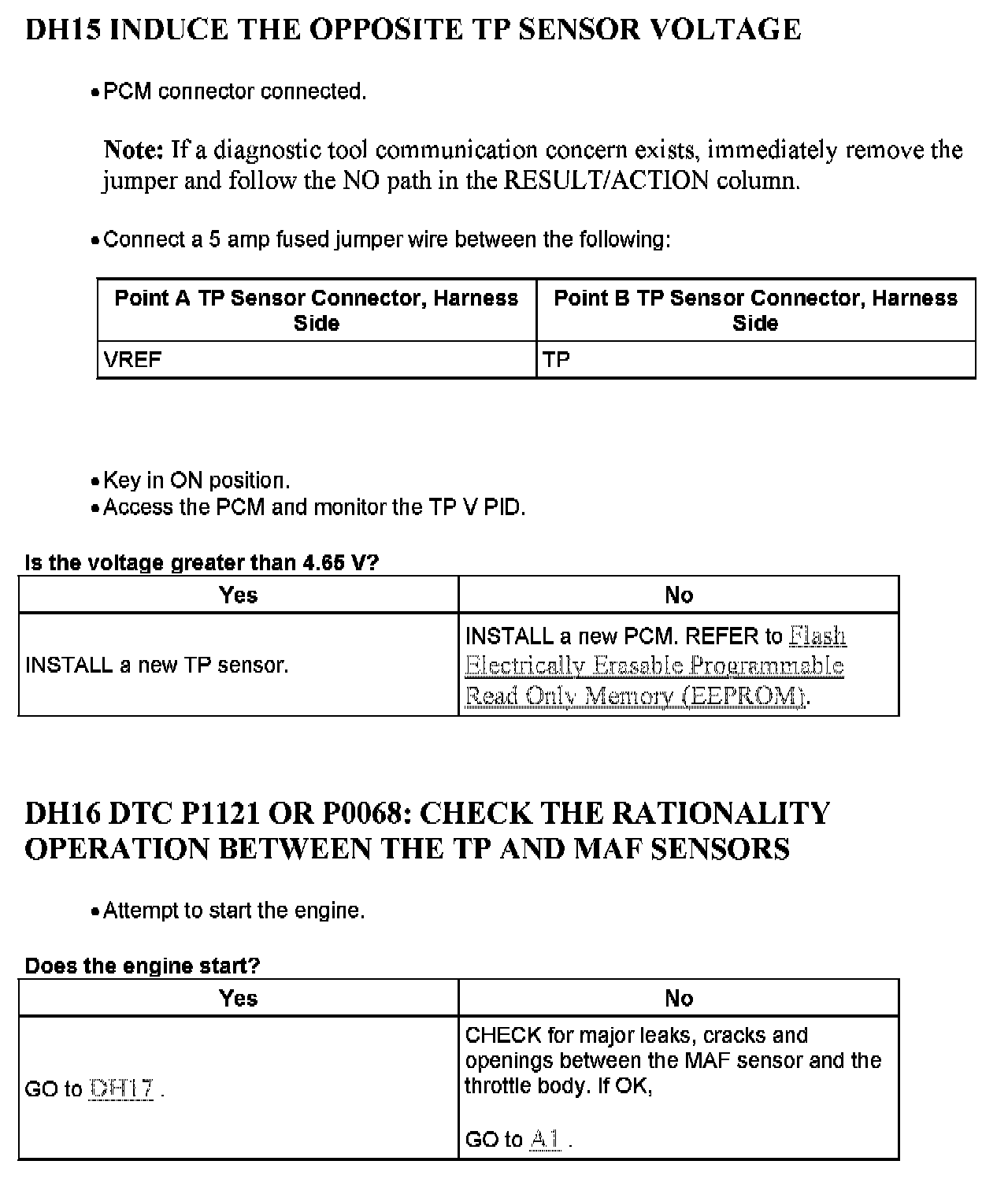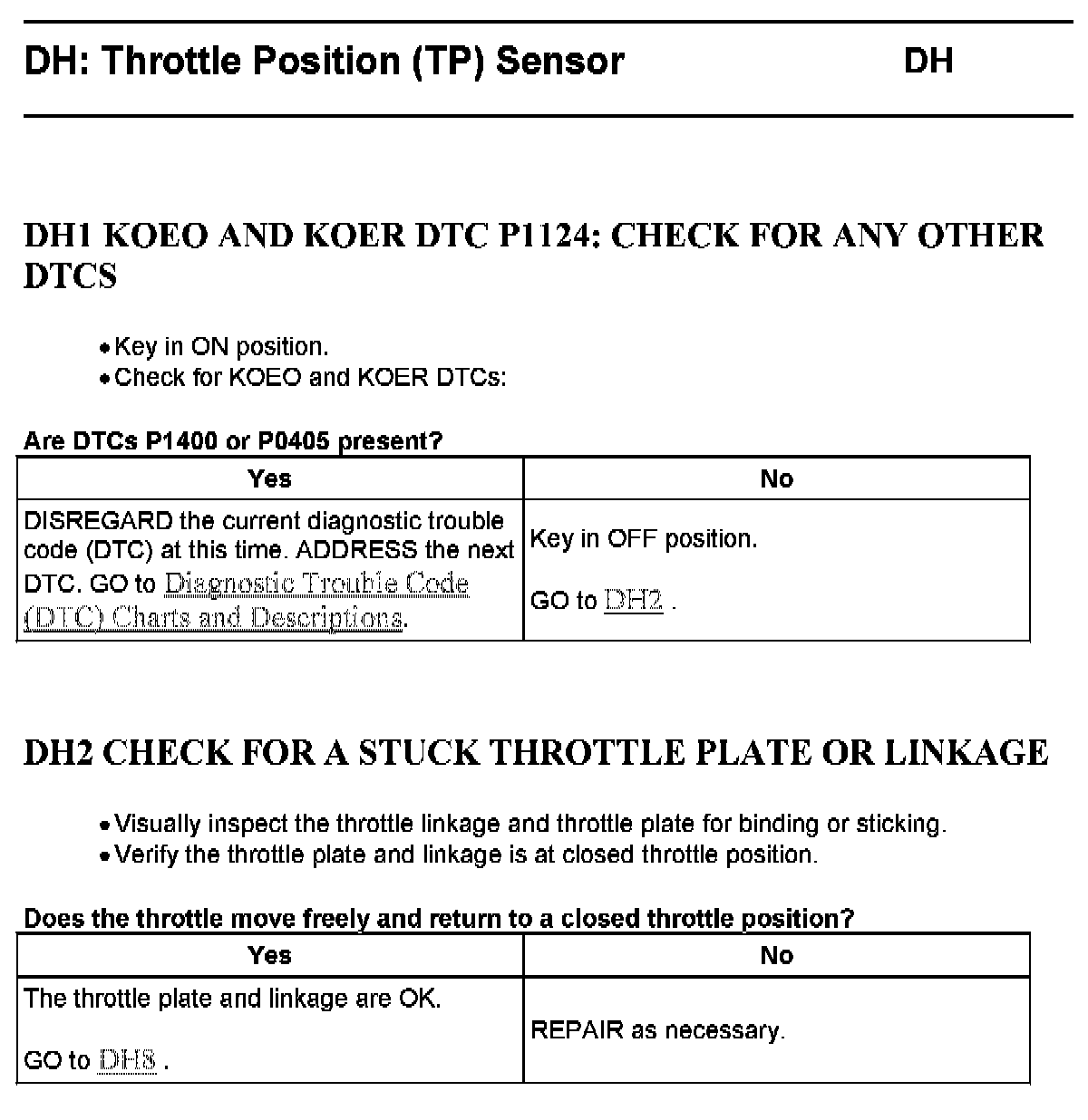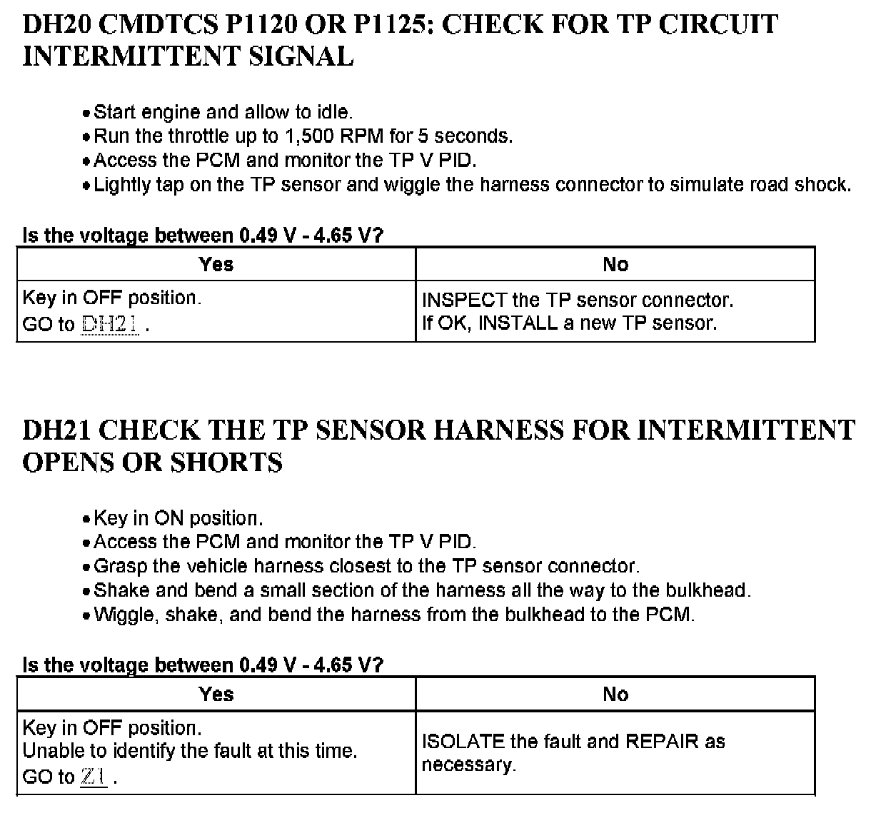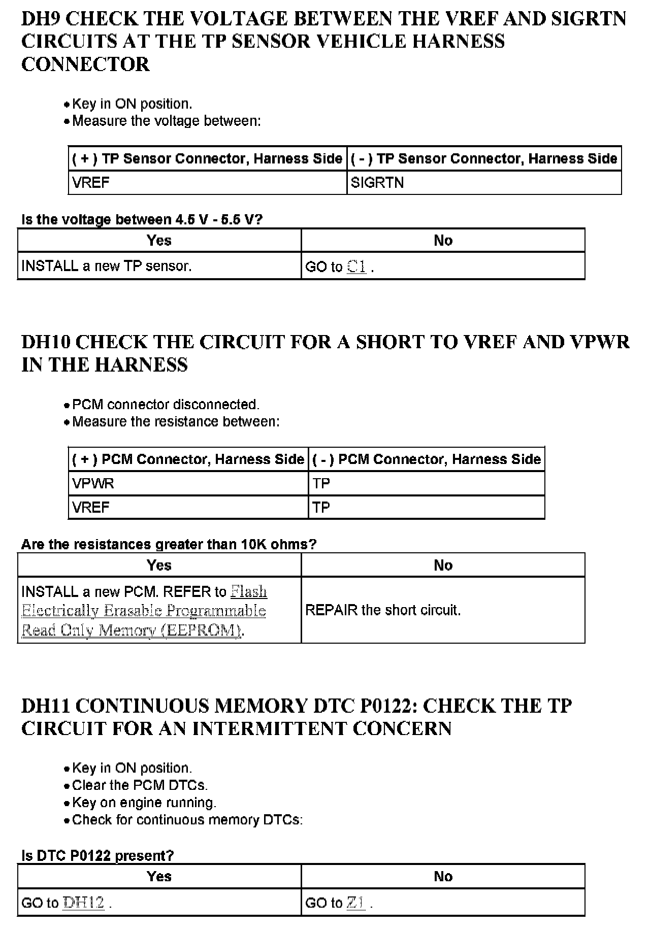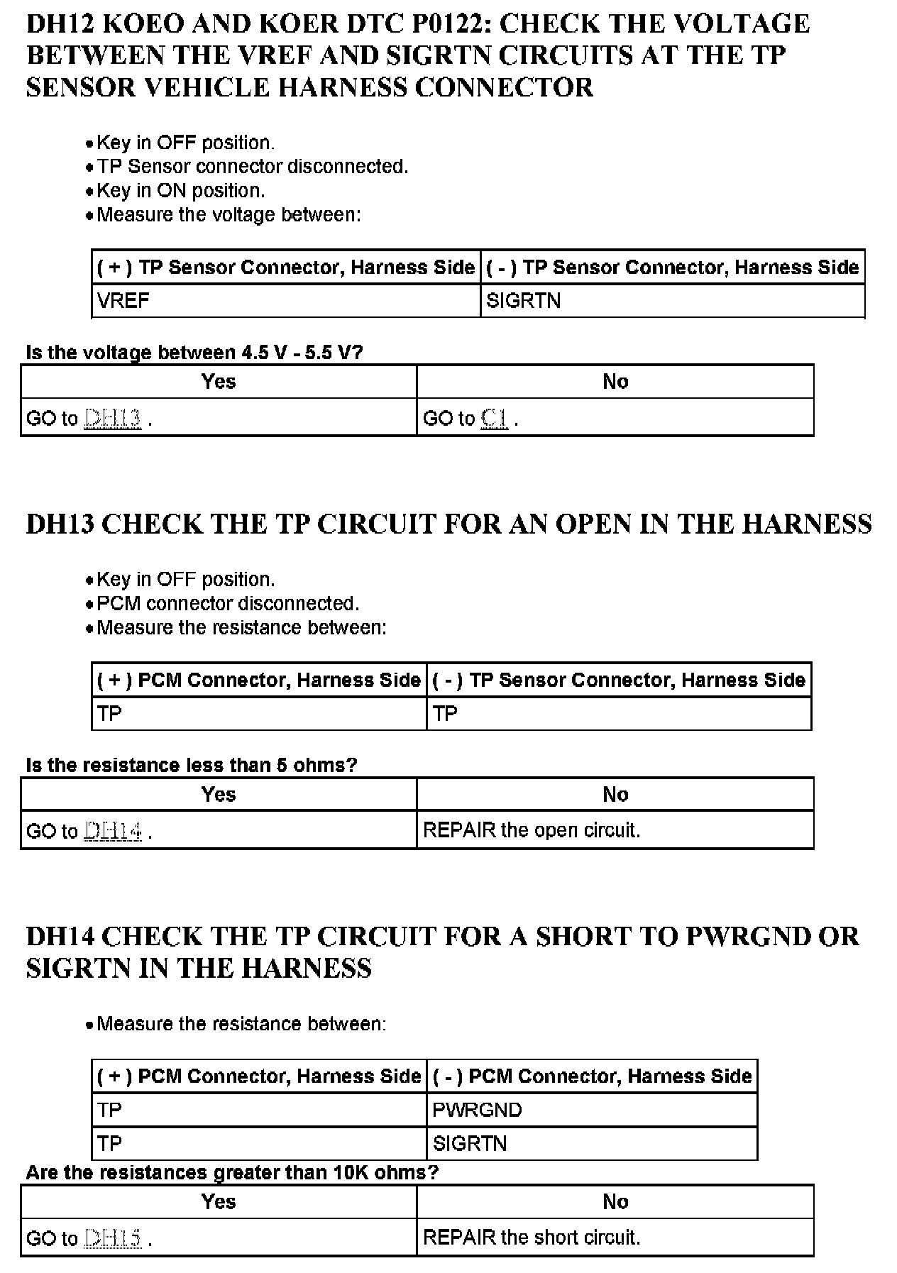 PINPOINT TEST DH: THROTTLE POSITION (TP) SENSOR