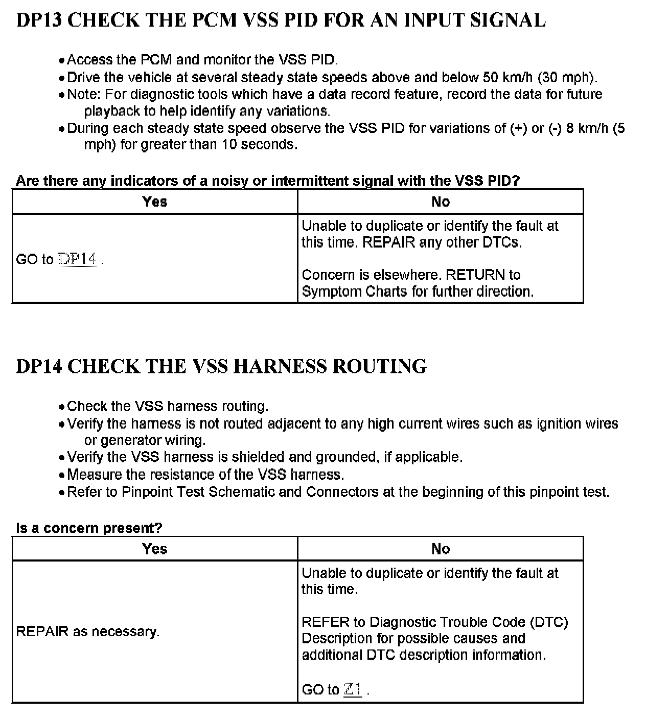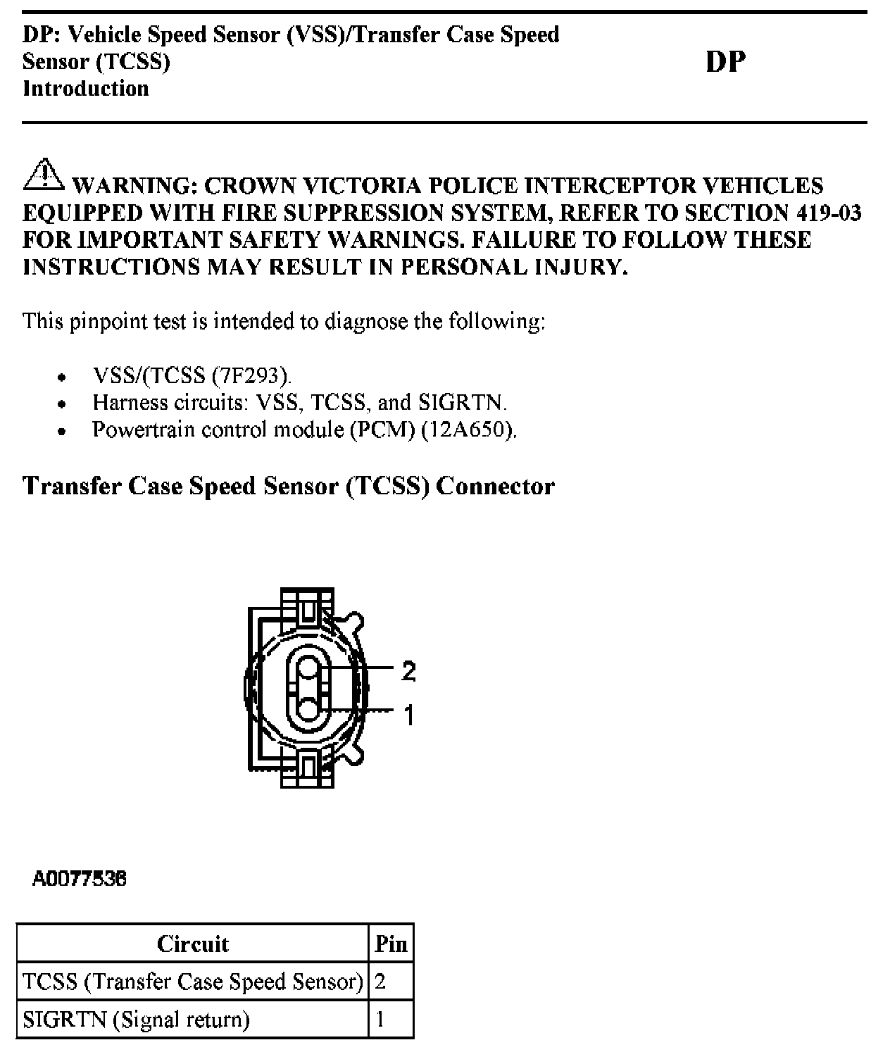PINPOINT TEST DP: VEHICLE SPEED SENSOR (VSS)/TRANSFER CASE SPEED SENSOR (TCSS)DP Introduction: