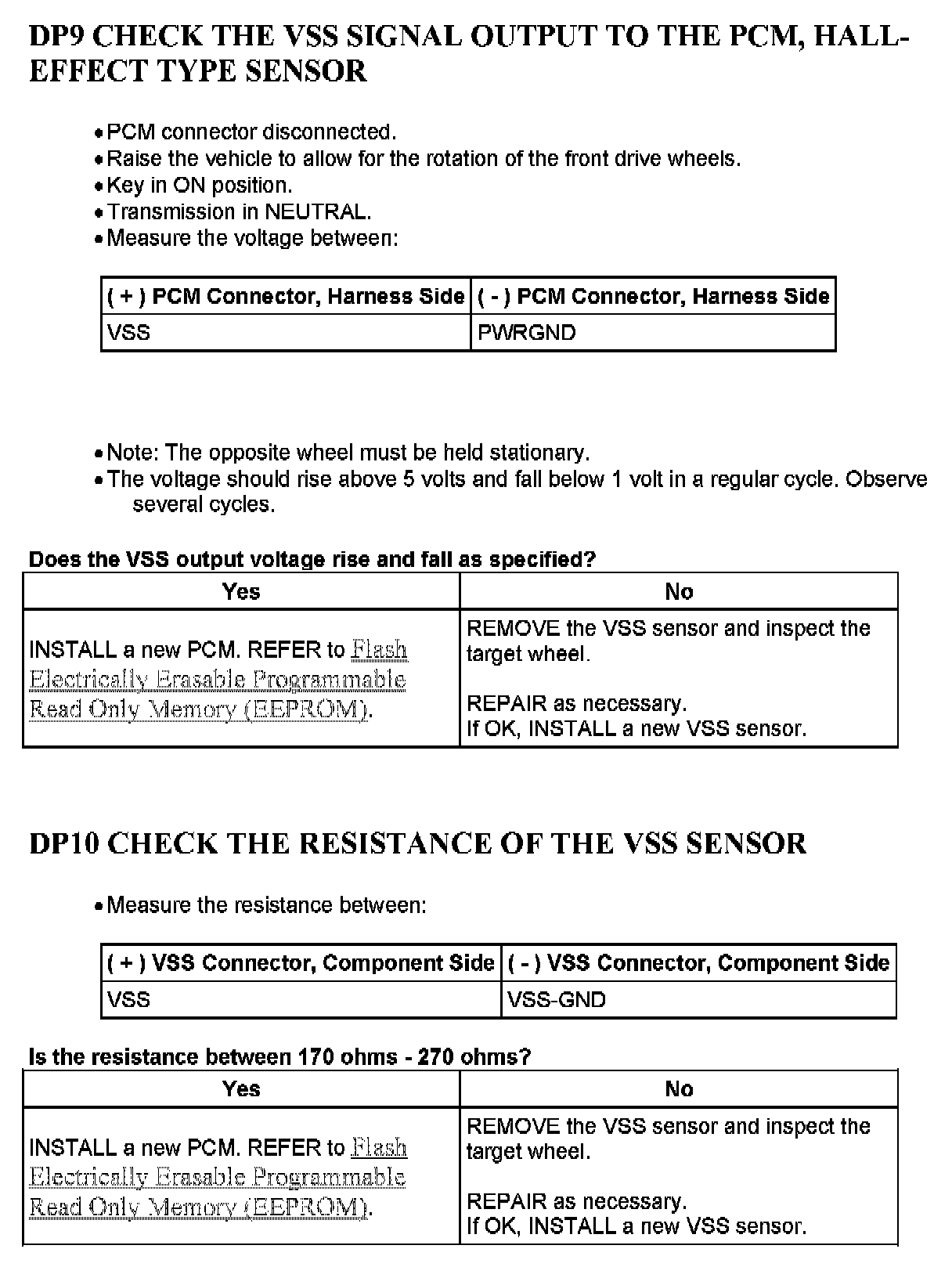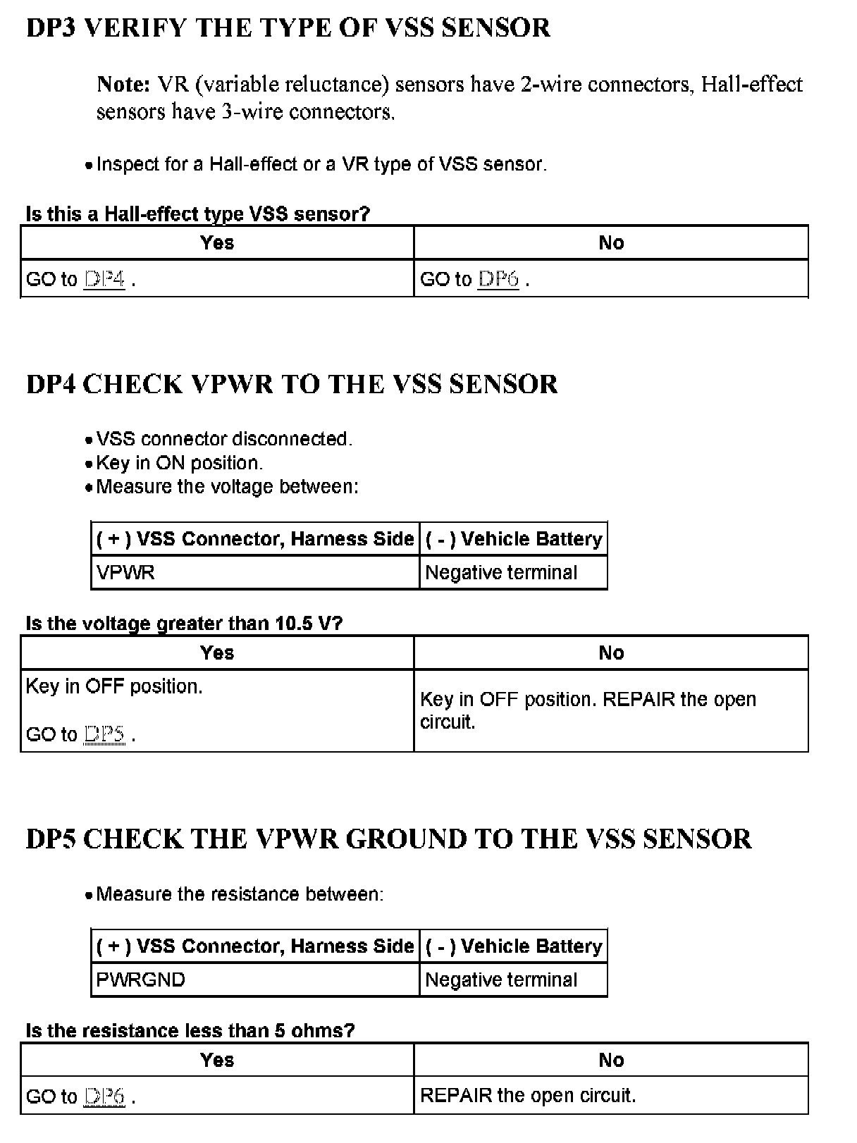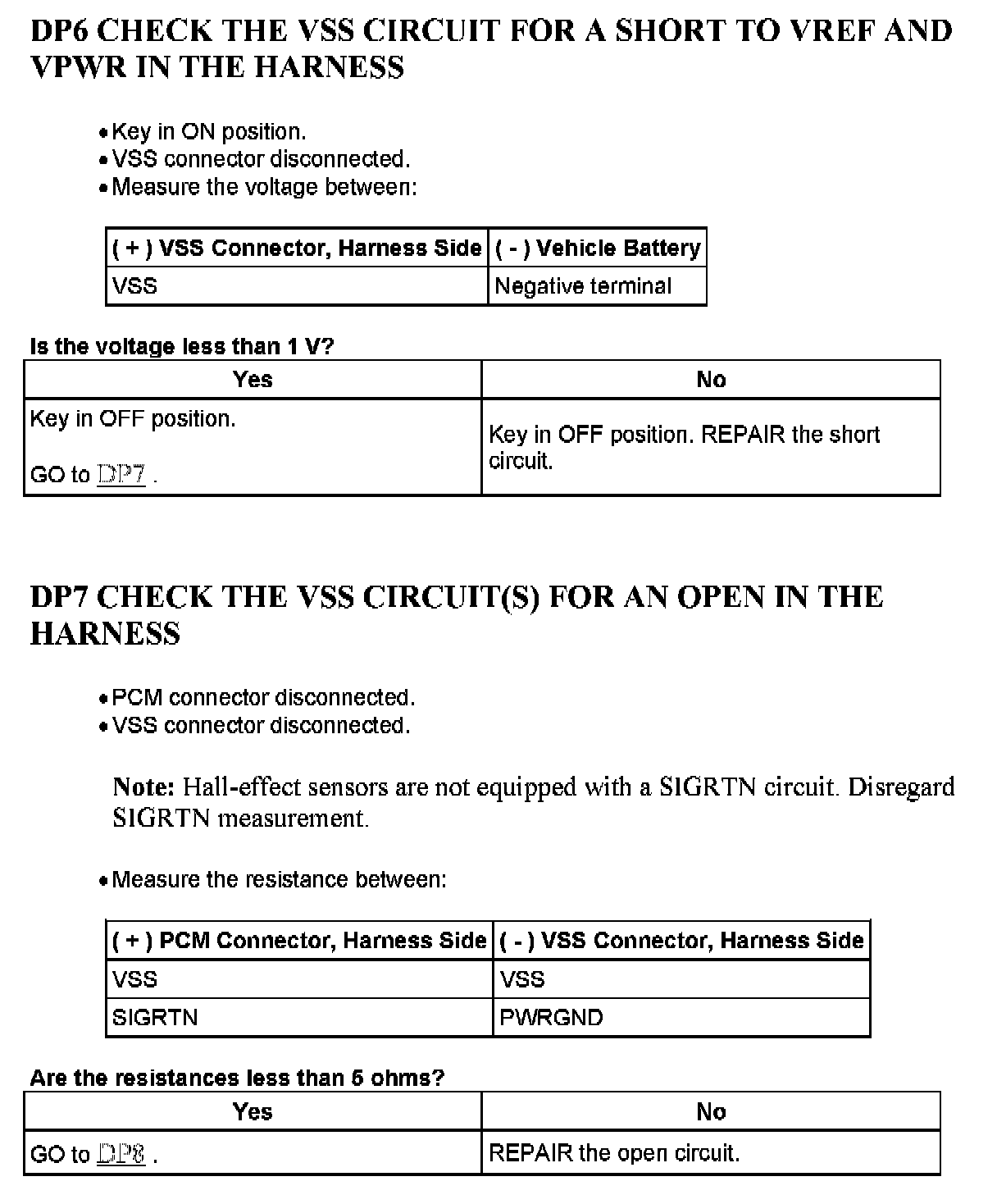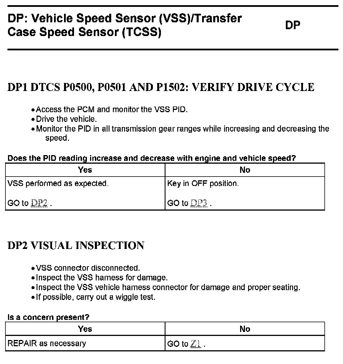 Tests DP: Vehicle Speed Sensor (VSS)/Transfer Case Speed Sensor (TCSS)