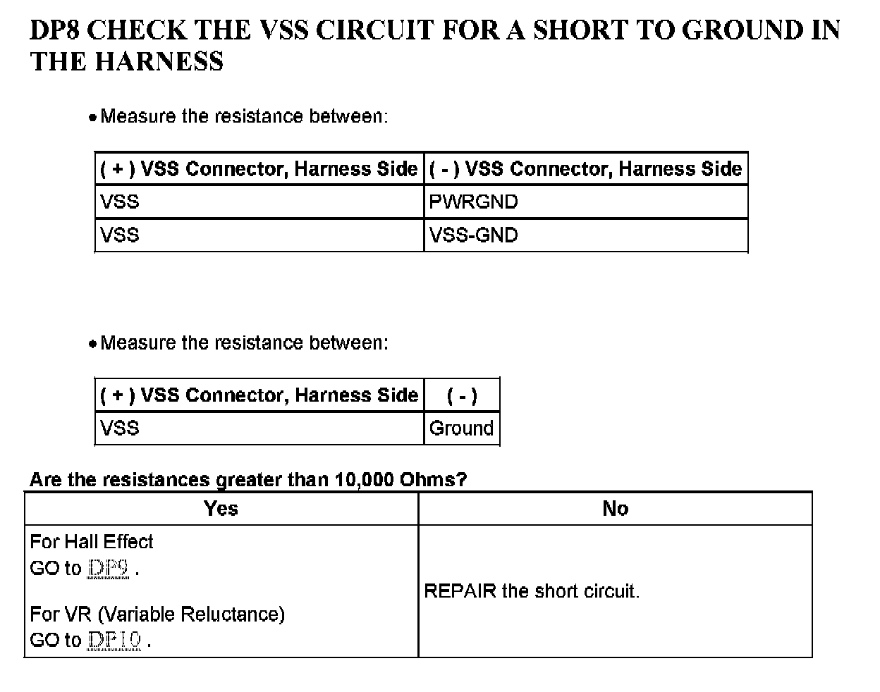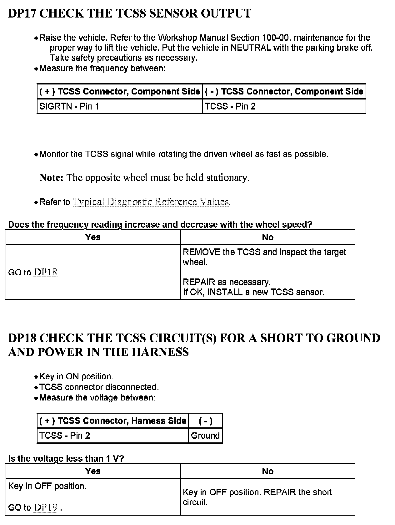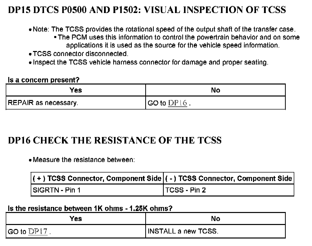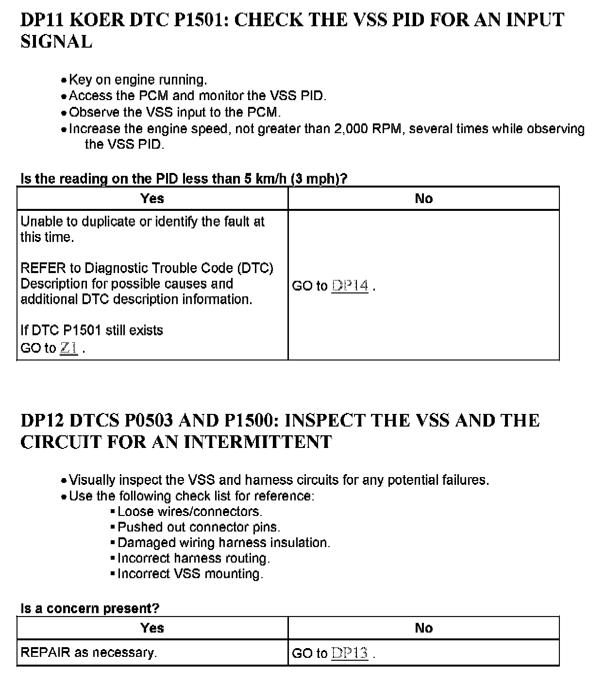 Tests DP: Vehicle Speed Sensor (VSS)/Transfer Case Speed Sensor (TCSS)