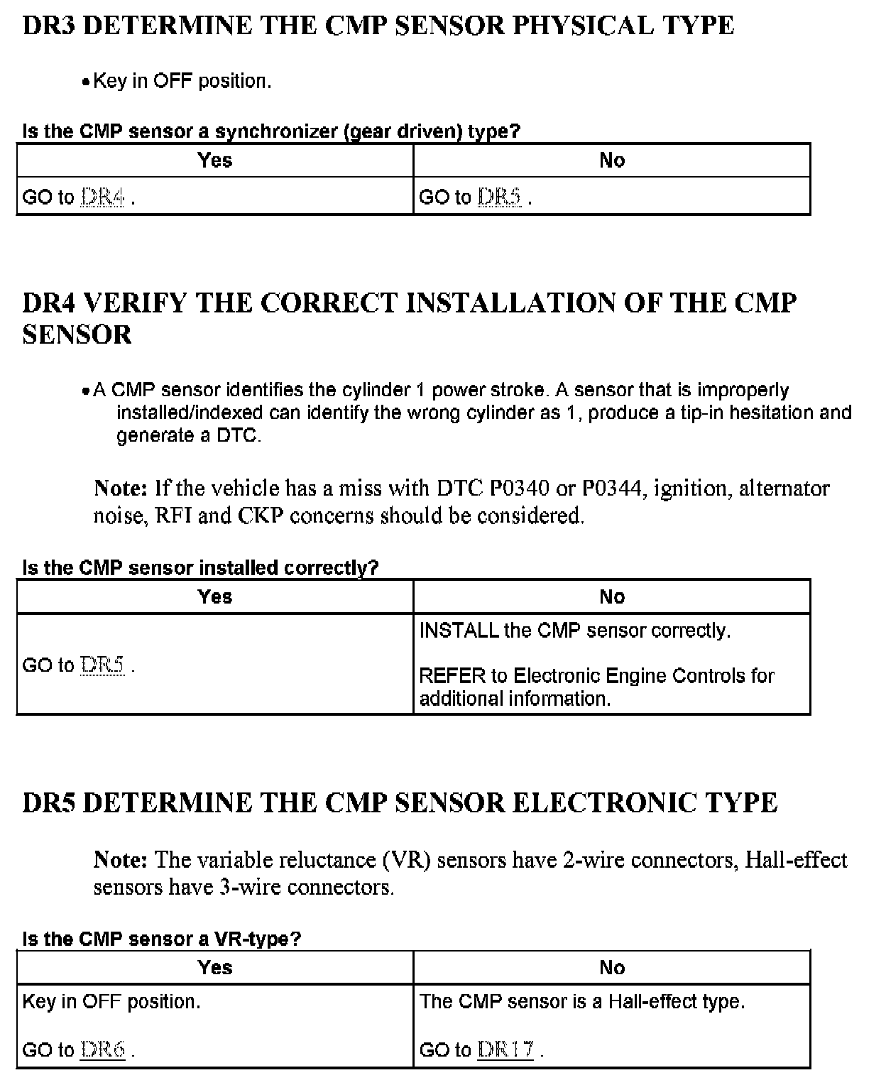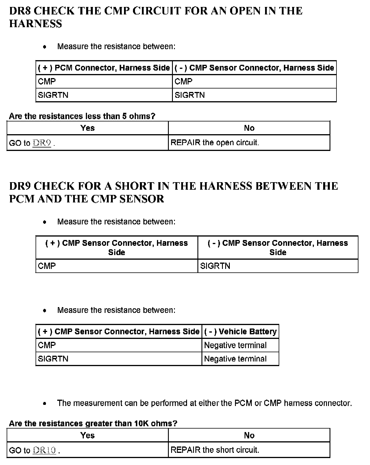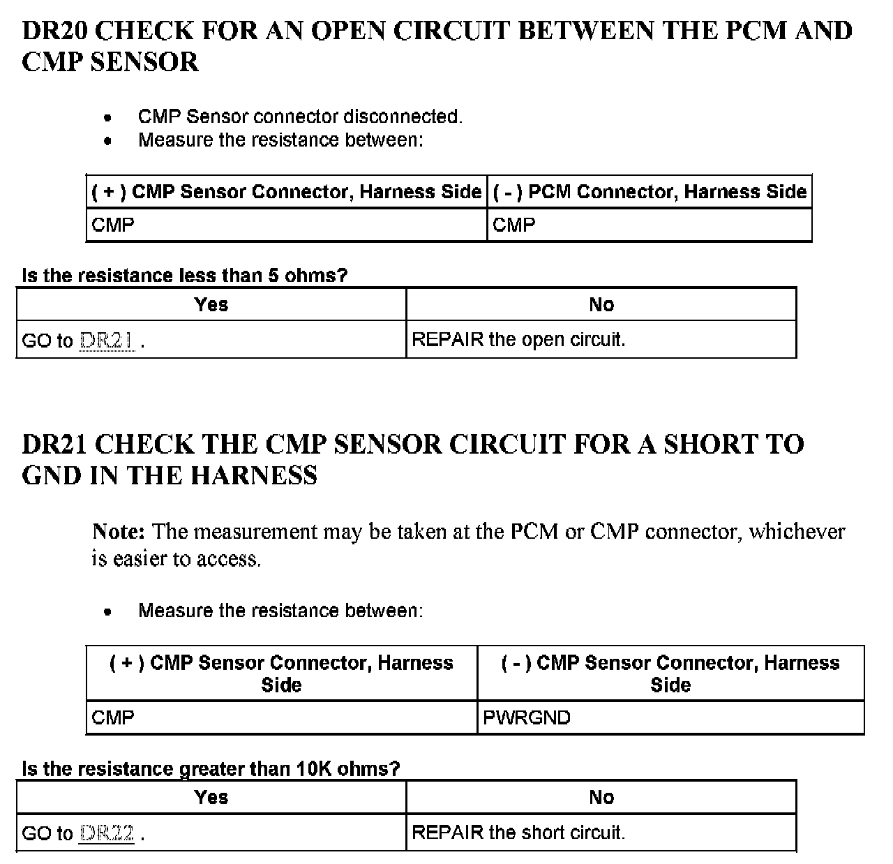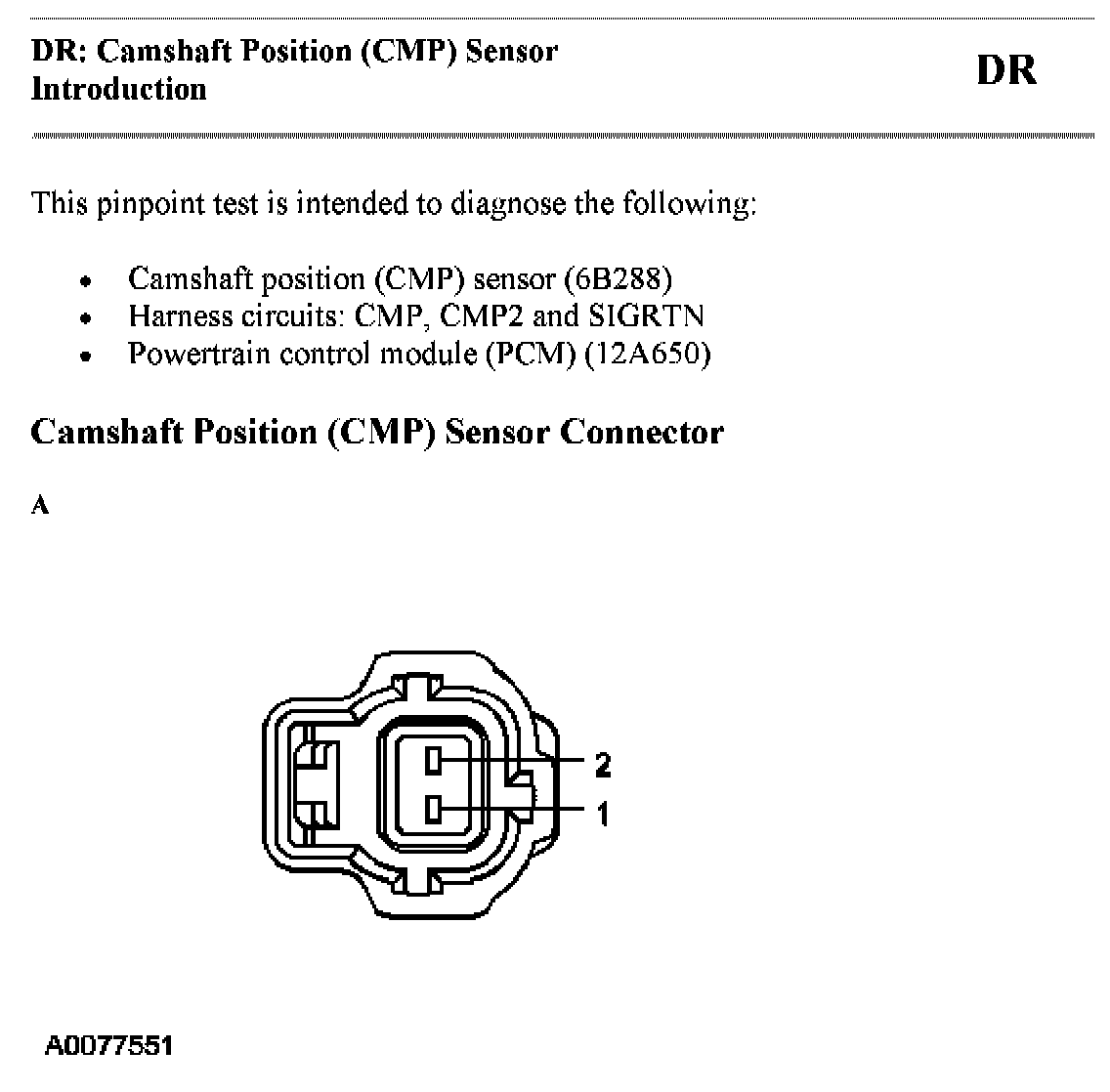 Tests DR: Camshaft Position (CMP) Sensor